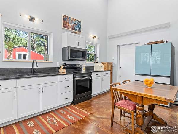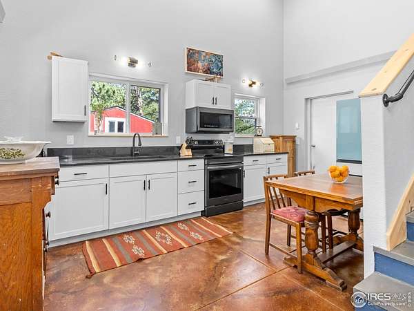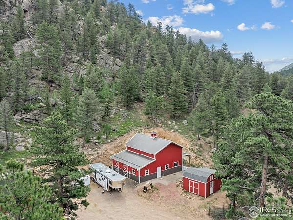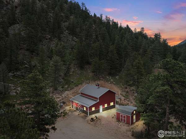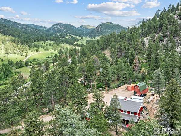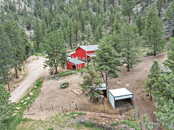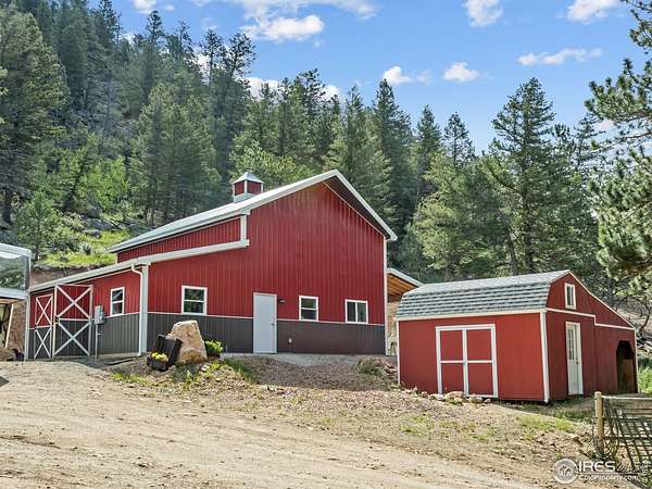 Two Homes on 7+ Acres Equipment Parking National Forest Access Modern Mountain LivingWelcome to 6761 US Highway 36, a one-of-a-kind Estes Park property featuring two separate homes on more than 7 private acres bordering the Roosevelt National Forest. Enjoy wide-open spaces, panoramic mountain views, and the perfect blend of modern design and rustic mountain charm. The main home, newly built in 2023, offers an open floor plan with vaulted ceilings, expansive windows, and high-end finishes throughout. The chef's kitchen features quartz countertops,oversized farm sink stainless steel appliances.. The home boasts peaceful mountain views. Step out to the covered patio overlooking the pasture and peaks. Custom bardominum easily adjustable to modify configuration for additional bedrooms or garage spaces.The second home, a charming cabin style home on its own parcel, adds flexibility-ideal as a guest retreat, office, caretaker residence, or potential long term or possible short term rental. A standout feature is the extensive parking and flat space for heavy equipment, RVs, trailers, or multiple vehicles-perfect for a contractor, outdoor enthusiast, or home-based business. Equestrians will love the barn, horse stalls, and fenced pastures, ready for horses or a hobby farm.With direct access to Roosevelt National Forest, this property offers endless recreation right from your property- ride, hike, or snowshoe.