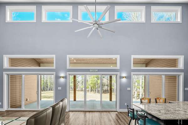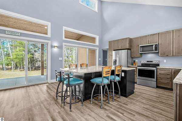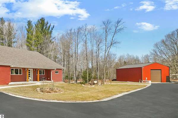Thoughtfully built and immaculately maintained, this ranch home offers easy main-level living on 40 private acres just outside of the Village of Kingsley. Inside, you’ll find luxury vinyl plank flooring throughout, vaulted ceilings, and abundant natural light from transom windows and skylights, all complementing the open, functional layout and wooded views. The kitchen features granite countertops and stainless steel appliances, while the primary ensuite includes a private bath with a tiled shower. A covered rear patio provides a great place to take in the setting, while the property also includes a fenced yard, RV hookup, 30x40 pole barn, whole house generator, and a mix of open space and mature woods for privacy and room to roam. A well-executed property that delivers space, comfort, and functionality in a truly private setting, just a short drive to Traverse City.
