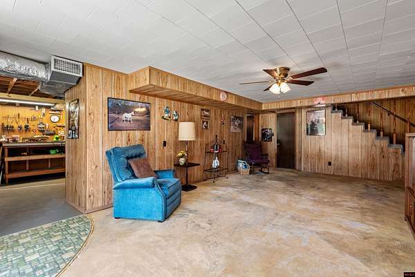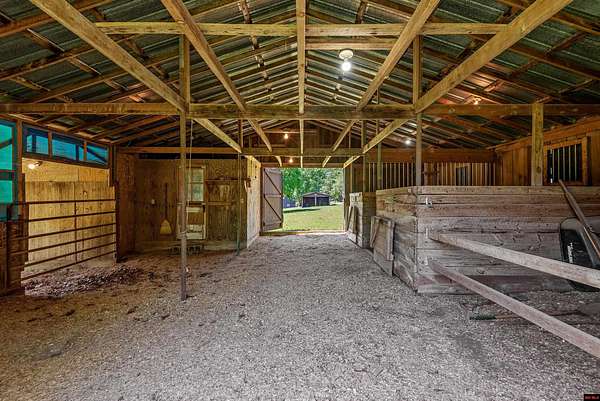 - Barn/Pole Barn, Corral/Stable, Fence, Gutters, Horses Allowed, Outbuildings, RV Parking, Storm Shelter