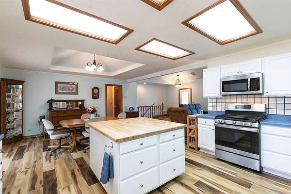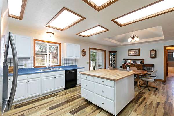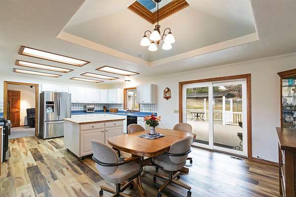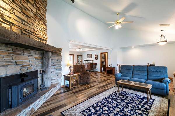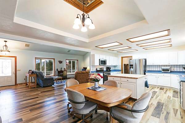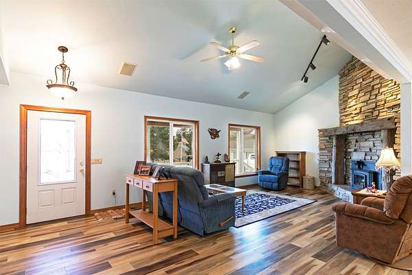 Welcome home to 677 Bitterroot Drive in Florence. Set against a scenic backdrop, this inviting property offers space, comfort, and versatility - inside and out. The main living room features a vaulted ceiling and a striking wood burning fireplace, creating a warm and expansive atmosphere ideal for both relaxing evenings and entertaining. The kitchen is thoughtfully designed with a spacious island perfect for meal prep and casual dining. Just off the kitchen is a comfortable den area with half bathroom, and access to the mud room and laundry area. The primary suite offers generous space along with a beautifully renovated ensuite bathroom and walk-in closet. On the opposite side of the main level, you'll find two additional bedrooms and a full bathroom, providing a functional and private layout. The daylight walkout basement expands the living space with a large family room, renovated 3/4 bath, bonus room with direct access to the lower garden area, abundant storage, and a mechanical room complete with a small built-in safe. Outdoor living is just as impressive. Enjoy Montana's beauty from the covered front porch - the perfect place to take in the views - or host gatherings on the expansive back deck overlooking the property. Additional features include covered RV parking, an open shed, covered firewood storage, an attached double garage, and a detached four-stall garage with additional shop space. The perimeter is fully fenced, and access is convenient year-round with paved roads and a paved driveway. This well-maintained property offers the ideal blend of rural tranquility and practical amenities.
