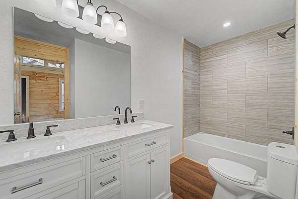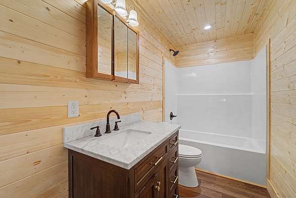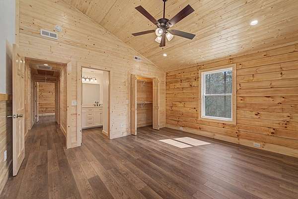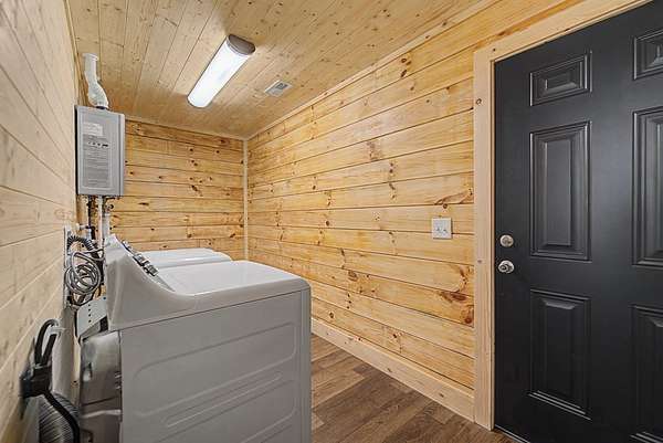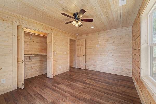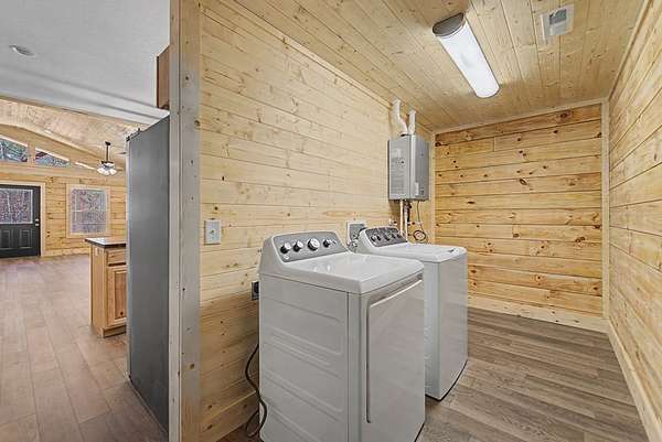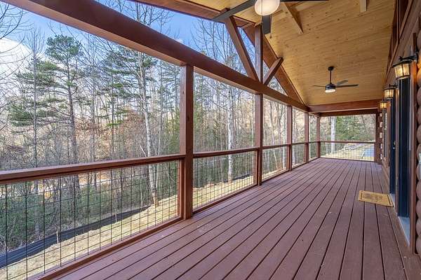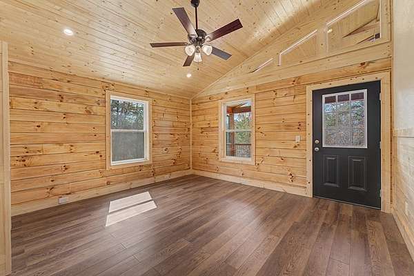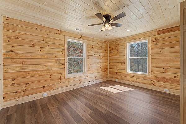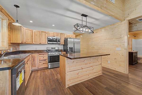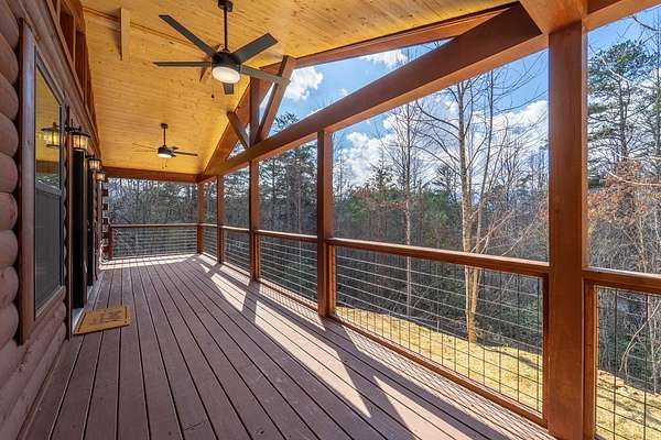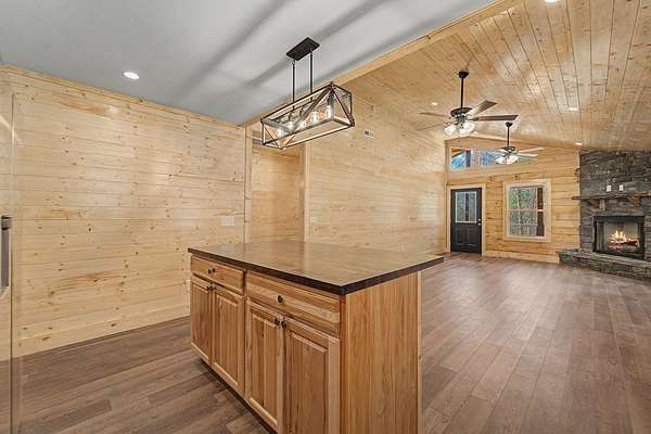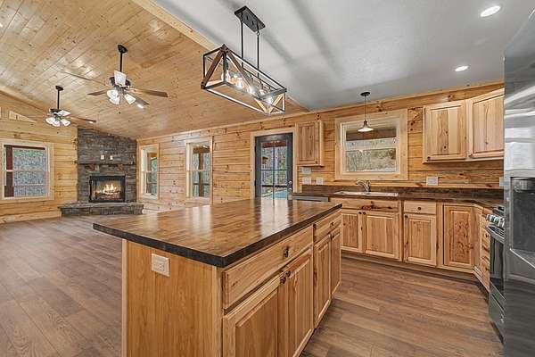 Welcome to this charming brand-new 2-bedroom, 2-bath log cabin that blends rustic warmth with modern comfort. The open living and kitchen area features vaulted tongue-and-groove ceilings, butcher-block countertops, stainless steel appliances, generous cabinet and counter space, and an island with a breakfast bar that connects easily to the dining area. A cozy corner stacked-stone gas fireplace anchors the living room, creating the perfect spot for cool mountain nights. The spacious primary suite offers a vaulted ceiling, dual-granite vanity bath, and private access to the wraparound covered porch. A guest bedroom, second bath, and a large laundry/storage room with a gas tankless water heater complete the interior, all enhanced by durable luxury vinyl plank flooring. Outside, enjoy a low-maintenance exterior with a metal roof, seasonal winter mountain views with summer privacy, ample parking, and a dedicated firepit area. Located in a gated log cabin community with sensible restrictions and paved roads, this home offers peace of mind and convenience. Just minutes from Harrah's Cherokee Casino, it's ideal as a vacation rental, second home, or full-time getaway.