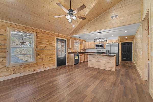 - Breakfast Bar, Cathedral/Vaulted Ceiling, Ceiling Fans, Cell Service Available, Island, Living/Dining Room, Main Level Living, New Kitchen, Primary On Main Level, Primary W/Ensuite