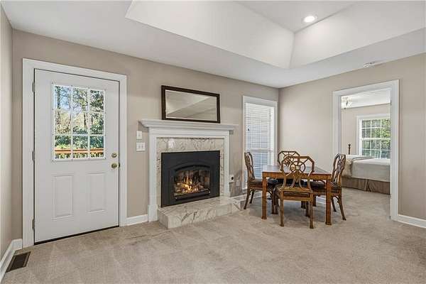 Imagine living around the corner from Auburn University Campus in one of downtown Auburns most desirable locations, tucked away on a peaceful 1.5 acre lot. This opportunity comes with options : 1) move right in and enjoy the property or 2) carve out a space for something new. This beautifully updated property spans across the 1.5 acres, boasting excellent condition and a highly sought-after floor plan all on ONE LEVEL!!! The home features 4 spacious bedrooms, 3 full bathrooms, an office with private access, and a double car garage. Two of the bedrooms are potential primary suites offering flexibility and comfort. Upon entering, the foyer impresses with beautiful oak hardwood floors and the size of the great room is desirable featuring a tray ceiling that balances the focus on a striking Carrara marble facade gas fireplace. The dining room leads to the large updated kitchen, perfect for cooking and entertaining with stainless steel appliances including a coveted gas range. A spacious laundry room is strategically located off both the kitchen and the primary suite. The primary bedroom situated on one side of the house boasts a separate shower, garden tub, double vanity sinks and a large walk-in closet with custom storage. A private office off the primary has exterior access and is ideal for working from home. The other side of the house lays out the next three bedrooms and two bathrooms. One of these bedrooms is essentially a second primary as it has an ensuite bath plus a walk in closet with custom storage. This corner lot offers endless possibilities , with enough space to subdivide and construct a second home elevated above the flood plain in the back lot, subject to city approval. The fenced backyard connects to a beautiful stretch of the lot reaching the new Greenway Easement granted to the City of Auburn. This easement allows public access for recreational use like walking and biking trails along Town Creek & this is one of many unique selling features.
