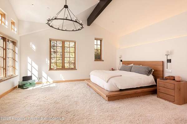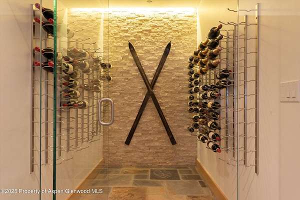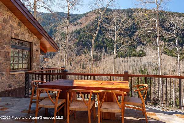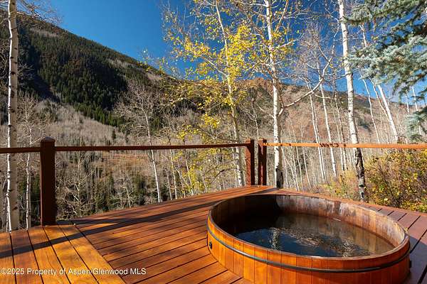Located 10 minutes from town and surrounded by the Elk Mountains, 6770 Castle Creek Road is a sanctuary offering access to all that Aspen has to offer. Perched on the hillside overlooking the Castle Creek Valley, this chalet-style home brings in all of the surrounding scenery including dramatic views of South Highland Bowl, Five Fingers and the surrounding mountains. Walk-out patios grace large portions of the house including a main-level wrap-around that leads to an outdoor dining area and a wooden large deck complete with an encased Japanese soaking tub. The main level includes a beautiful central stone hearth complete with wood-burning fireplace that anchors the living and dining rooms as well as the custom gourmet kitchen with Wolf, Bosch and Subzero appliances. A separate media room and guest suite are adjacent to a stone and glass wine room and abundant pantry space. Completing the main level is the wellness studio, complete with an infrared sauna. Just off the main living space is a converted heated shed equipped to house a private office space or workout studio. The upper level is home to the large, private master suite that has its own gas fireplace and private patio. Adjacent to this is a large den/office space that overlooks the living room and includes a cozy loft space furnished with two beds that is beloved by any youngster. The walkout from this zone leads to a separate hillside patio perfect for sunbathing and drinking in the property's views. The lower level includes a wonderful, private en-suite guest room. Every interior space is appointed with top-level finishes. The bathrooms are light and bright with exquisite honed white calacatta marble throughout. All of the glass doors in the house are Starphire and of extraordinary quality. The exterior features copper windows and contemporary stone and the yard is wild and beautiful year-round, requiring no maintenance. The attached 2-car garage has incredible storage space and ready to house any of your gear and offroad toys that provide summer or winter access into the backcountry, most notably access to skiing on Aspen Mountain via Little Annie's Rd that avoids the gondola line on even the deepest powder days. Extensive top-of-the-line home systems afford the luxurious comforts of in-town living. The home is solar powered with significant battery storage. A whole-home R-O water system includes over 500 gallons of backup water storage and a high-pressure pump to ensure robust flow from all areas of the home. The property is also wired for fiber-optic broadband internet ensuring high-speed connectivity. Several systems have been updated recently.