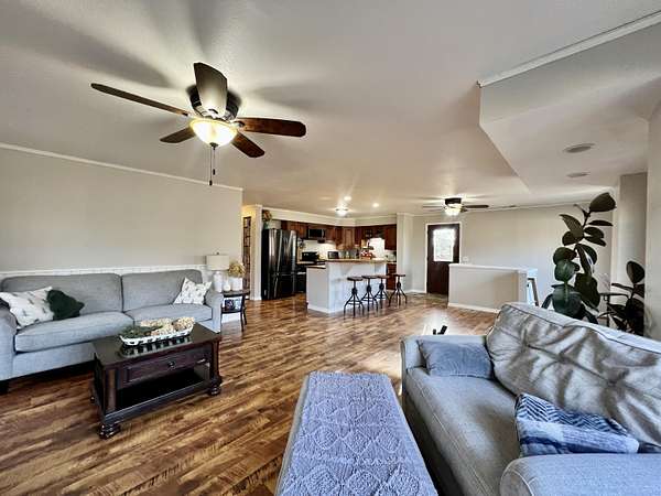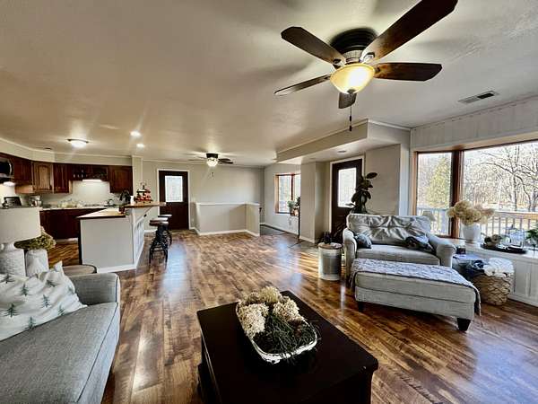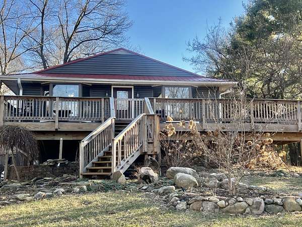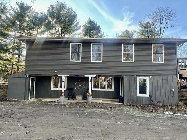 This beautifully remodeled contemporary 4-bedroom, 2 1/2-bath home is nestled in the heart of 5 private acres, offering the perfect blend of comfort and adventure. Designed to capture sweeping views of the property, the home was thoughtfully updated in 2020 and invites natural light into every space. Enjoy peaceful mornings on the spacious deck as hummingbirds gather nearby, and evenings exploring your own private trails. The 1,800 sq. ft. detached garage/outbuilding is ideal for projects, hobbies, or storing recreational vehicles and outdoor toys. A separate garden shed, fenced area for pets, and expansive open land add to the property's versatility. Major updates provide peace of mind: roof, furnace, siding, and appliances (2020); deck (2021); 250-foot well (2009); on-demand hot water heater (2020); water softener; and washer and dryer (2020). Privacy. Space. Comfort. Welcome home.