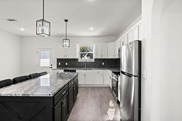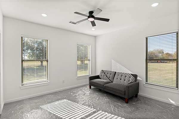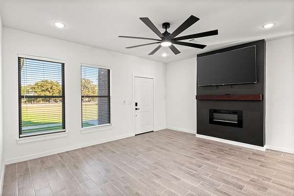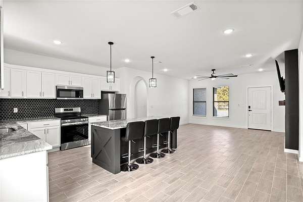 Beautiful New Build on 2.5 Acres in Barry, TX!!! Experience modern country living in this brand-new 3-bed, 2-bath home spanning 2,250 sq. ft. Nestled on 2.5 acres, this property blends luxury finishes with peaceful surroundings. Inside, you'll find granite countertops, stunning ceramic tile floors, an electric fireplace, and striking decorative light fixtures throughout. The open-concept layout offers a spacious feel ideal for entertaining, while the primary suite provides a relaxing retreat. Enjoy refined craftsmanship and thoughtful details in every corner - the perfect combination of comfort, style, and space. TV, Barstools, and Refrigerator included.