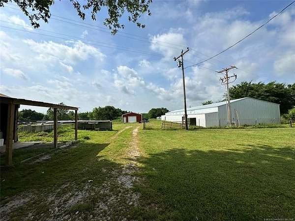 Comfortable 2BD/1BA country home on approx. 5 acres m/l, ideal for homesteading or licensed cultivation. New CHA installed June 2021. All kitchen appliances, washer, dryer, dishwasher, and stove will stay with the property. Home features tub, front porch, back deck, and mature shade trees. HORSE STABLE, SHED, MULTIPLE BUILDINGS. Property includes a fully built-out indoor grow facility with four rooms, 1,900 amps 3-phase power, (2) 10-ton AC units per room, (21) 3-ton split units, (2) Quest 225 dehumidifiers for the flower rooms, and (5) dehumidifiers in the dry room. Additional improvements include a 24x30 shop with electric, 12x36 storage building, 3 loafing sheds, storm cellar, and a separate 200 amp single-phase electric setup for the house. There is also a complete setup for a mobile home or travel trailer including septic, water, and electric. Just 5 miles to Brewer's Bend Recreation Area and 2 miles to Spaniard Creek, and only 10 minutes from Muskogee city limits. Property is in good standing with OMMA. COO and compliance are clean. Turnkey country property ready for living or licensed operation!