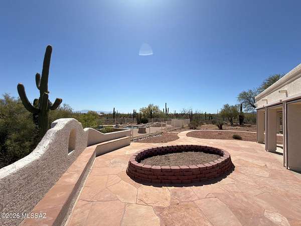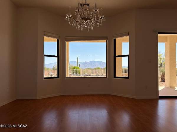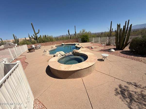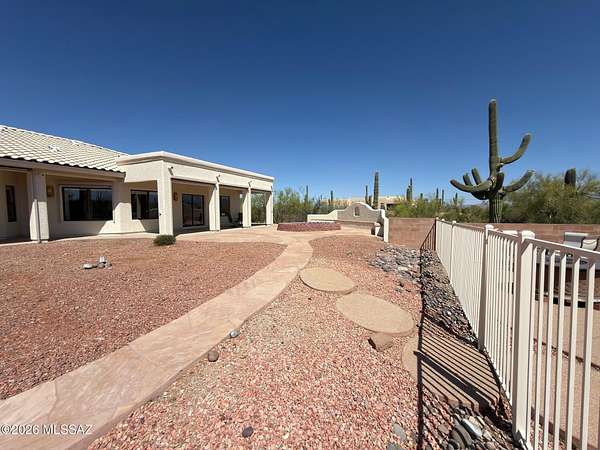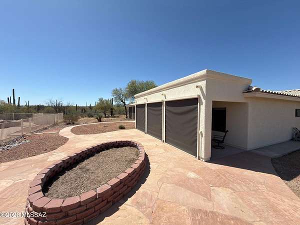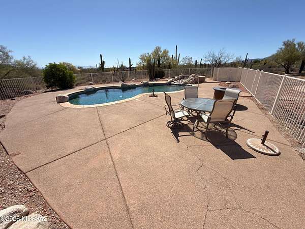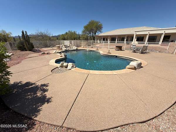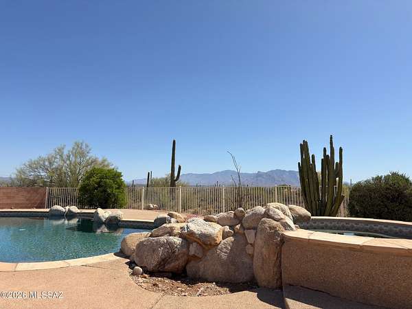 Must See' million $$ majestic panoramic views, 3300sf 4bd 3ba 3car garage home on 4ac with no HOA restrictions. Close but not too close to the freeway and shopping. Kitchen boast dble oven, gas-cooktop, microwave, island, granite counters, pantry & lots of cabinet space. Panoramic views of the Catalina mountains from your back patio and all east facing windows, patio has sunshades that are raised and lowered electronically. Sparkling pool, Zoned AC. Extra large laundry room with utility sink. Front load washer and dryer on pedestals included. Three car garage with attached storage cabinets. New paint inside and out, Exterior walls are 2 x 6 construction. Full building plans available. Outside security cameras included. Wrought iron fence is around the pool only.
