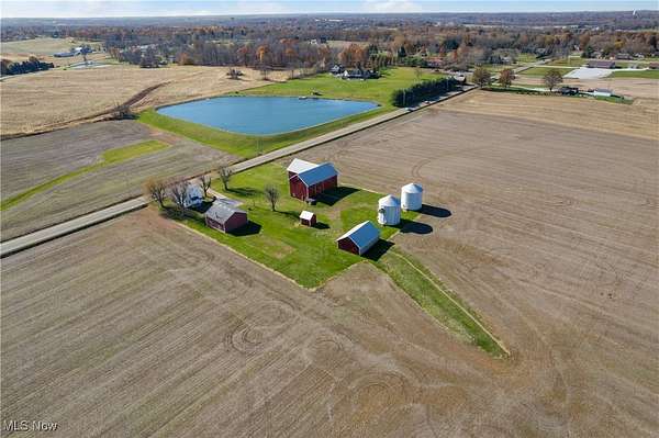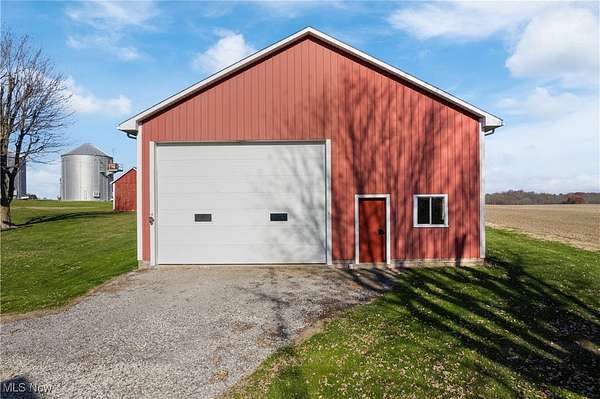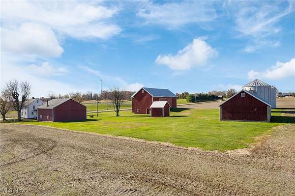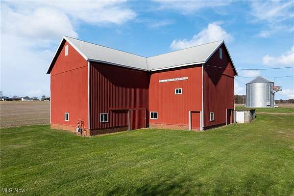 This charming 1923 farmhouse sits on a picturesque 2.58-acre property that's perfect for hobby farming or 4-H Projects. The vinyl-sided, two-story home offers 1,426 square feet of comfortable living space, featuring four bedrooms upstairs, an eat-in kitchen, a formal dining room, a living room, and a full bath with main-level laundry. Divided Basement with updated Gas F/A Furnace. Enjoy morning coffee on the covered front porch or evening relaxation on the rear porch. The real standout here is the exceptional outbuildings. The impressive bank barn features solid floors with a straw shed, steel siding, and roofing. 36'x40' insulated pole barn comes equipped with a large overhead door, jib crane, wood burner, water access, and overhead catwalk bin storage, perfect for workshop needs or equipment storage. Additional storage includes a 30'x42' concrete block machinery building, a small corn crib, and two nine-ring grain bins. Whether you're looking for a hobby farm or workshop paradise, this property delivers functionality and charm.