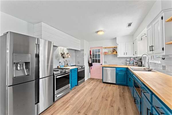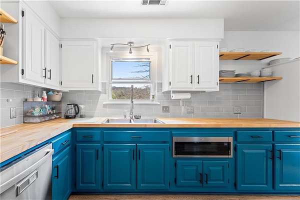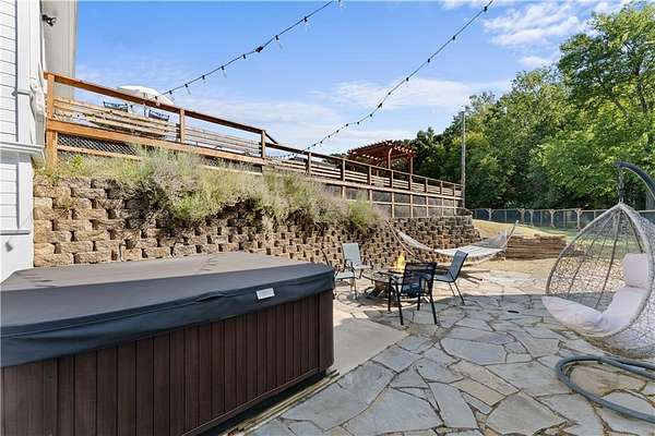 LIMITLESS OPTIONS FOR FAMILY, INVESTORS, AT HOME BIZ OR EVENTS AND 6 MINS TO THE UNIVERISTY OF ARKANSAS! This pristine land & unique tri-level home offers a heated pool & hot tub, sustainable green living w/ a geothermal HVAC system, all new Low-E windows, exterior security sys., brand-new roof and all newly updated appliances + multiple living spaces, 2 kitchens & laundry on each floor. Upper level has living area w/ dual-oven kitchen, 3 bed & 2 bath. Mid level has 3 bed, 3 bath, kitchenette + direct access to deck & pool. Lower level is ideal for entertaining or multi-gen living w/ tall ceilings, kitchen, theater, laundry & bath. Outdoor oasis w/ pool, wrap-around deck & hot tub. Perfect for relaxation & gatherings, the impressive theater room is perfect for game days & movie nights. This isn’t just a home, it’s an opportunity. A 2,400 sq. ft., 3-Bay, climate-controlled shop is a dream for a biz owner, car-enthusiast or artist w/ 10 ton car lift, compressed air plumbing, welding setup, 1/2 bath + pickleball court