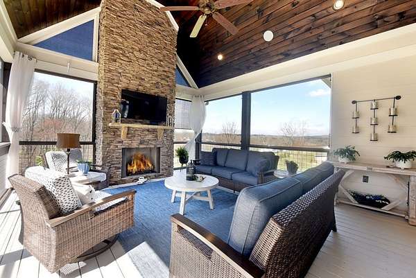 Experience luxury mountain living at its finest in this unbelievable custom-built home located in a highly sought-after gated golf course community. Enjoy access to exceptional amenities including a beautifully maintained clubhouse, sparkling pool, and both pickleball and tennis courts, all while being surrounded by the natural beauty of North Georgia. This stunning property offers breathtaking views of the golf course paired with long-range mountain views that deliver unforgettable sunrises each morning. Designed for both everyday comfort and elevated entertaining, the expansive screened-in back porch features a beautiful outdoor fireplace, creating the perfect space to relax and unwind year-round. The show-stopping accordion sliding glass door opens the entire back wall of the home, seamlessly blending indoor and outdoor living and allowing the main living area to flow effortlessly onto the porch. Inside, you will find high-end finishes throughout, including custom cabinetry that highlights the quality and craftsmanship of this home. The thoughtfully designed layout features four spacious bedrooms, with two located on the main level and two in the fully finished basement, all offering large walk-in closets. With four and a half bathrooms, there is plenty of room for family and guests. Additional features include a two-car garage on the main level along with a basement garage ideal for yard equipment, tools, or recreational storage. The finished basement provides excellent additional living space perfect for entertaining, a media room, or guest accommodations. This is truly a luxury home that offers an unmatched lifestyle, combining high-end design, incredible views, and premier community amenities into one exceptional property.