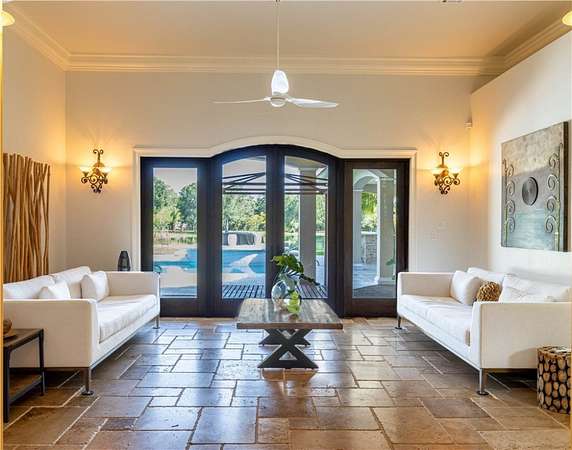 EXPERIENCE AN EXQUISITE LIFESTYLE OF PURE SERENITY. FABULOUS RETREAT OF 4662 SQ. FT, 4 BEDROOM, 5 BATH, 3 CAR GARAGE ON 4.61 ACRES OF ABSOLUTE TRANQUILITY. LUSH LANDSCAPING EMBRACES THE SALT WATER, POOL W/WATERFALLS, FOUNTAINS AND SPA. OUTDOOR KITCHEN W/DCS APPLIANCES. GENEROUS LANAI FOR ENTERTAINING. GOURMET KITCHEN W/ HIGH-END APPLIANCES & CONTEMPORARY FINISHES. STONE FLOORING & STACKED STONE GAS FIREPLACE. LUXE MILLWORK THROUGH-OUT. ENORMOUS TREX DECK PERFECT FOR ALL EVENTS.