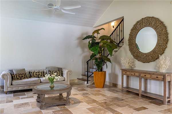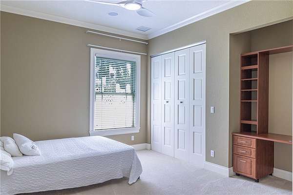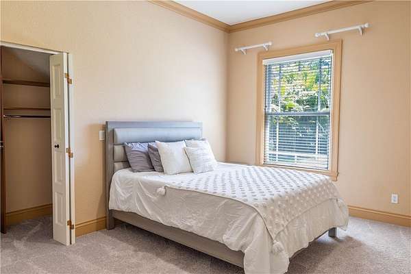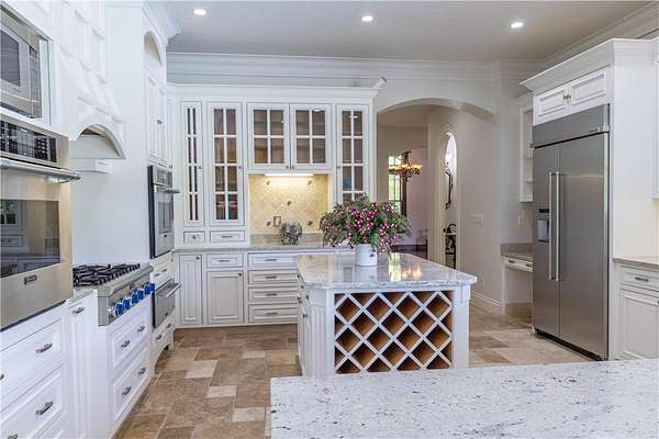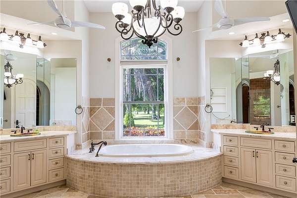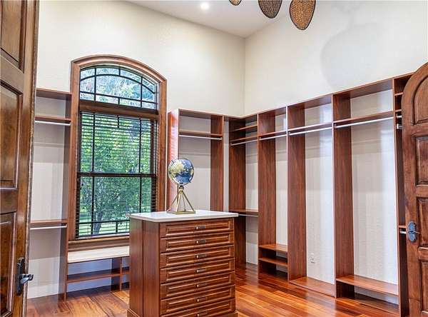 - Bathtub, Closet Cabinetry, Crown Molding, French Doors Atrium Doors, High Ceilings, Jetted Tub, Kitchen Island, Primary Downstairs, Vaulted Ceilings