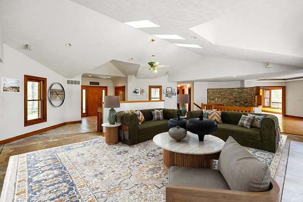 Don't miss the opportunity to own a mammoth size home with the best lot in the area! Incredible Lakefront Custom Built with 2x6 walls. Nestled on a beautiful wooded 3.84 acre lot with a sun-drenched back side. Just minutes from downtown Indy, the airport, and major shopping hubs. This spacious home is ready for your personal touch and full of Potential! You could not build this space at this price (below $120 per square foot when you consider the Lakefront Lot). Featuring an open-concept main living area with many windows and a stone fireplace. The seller has thoughtfully prepped the main level for your personal touch by removing all carpets and tacks. Making way for new flooring of your choice. Walk down circular stairs to even more Open Space Living in the walk-out basement. It's a standout! Featuring Loads of Windows with a view, Wet Bar, Sauna, Exercise Room, Pool Table Room, possible Theater Room, major storage, and bonus room, Ideal for recreation, guests, possible in-law qtrs or a home office. Car Enthusiasts or Hobbyists will love the Oversized 3-4 car garage (3rd bay tandem), with Workshop, and additional Storage space. OUTDOORS, you'll discover a 7 acre stocked lake, separate building for lake equipment and a private driveway to the lake. Perfect for fishing, kayaking, entertaining or relaxing in your own backyard oasis. Open Concept, Mammoth size rooms, Good Bones and Immediate Possession makes this One-Owner home a great opportunity for buyers looking to add value and personalize your own space. A rare opportunity to own a lakeview home on acreage with flexibility and loads of potential. Schedule your private tour today! Bring your vision to life with this unique property.