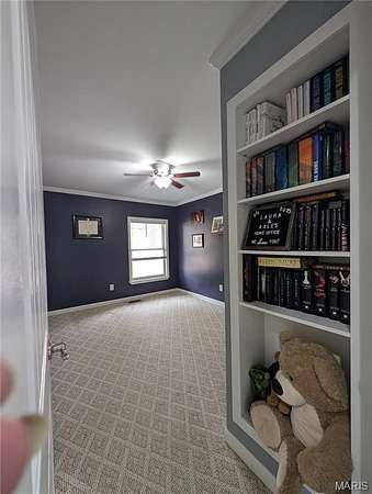 - Bookcases, Built-In Features, Ceiling Fan(s), Center Hall Floorplan, Crown Molding, Eat-In Kitchen, In-Law Floorplan, Open Floorplan, Separate Dining, Vaulted Ceiling(s), Walk-In Closet(s), Wet Bar, Workshop/Hobby Area