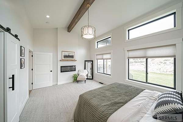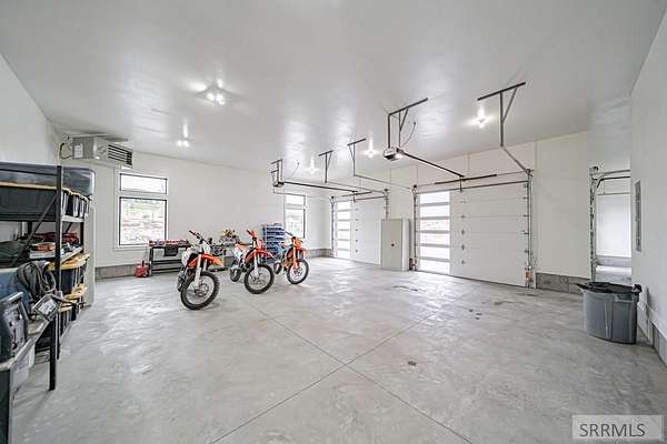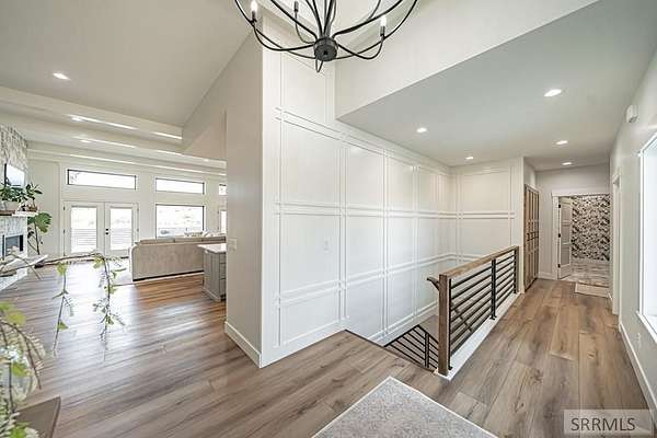 Discover the perfect blend of modern design and peaceful acreage in this stunning custom-built 2024 home on just under 3 acres. The open-concept main level is filled with natural light, anchored by a beautiful brick gas fireplace, and includes a stylish home office. The chef's kitchen features a large island, ample cabinetry, and a hidden walk-in pantry. A spacious laundry room offers built-in storage and deep pull-out drawers. The primary suite is a private retreat with vaulted ceilings, an electric fireplace, spa-like bath with soaking tub, oversized walk-in shower, dual vanities, and a generous walk-in closet. Every bedroom includes its own walk-in for exceptional storage. The finished basement adds three more bedrooms, a large bath with double vanity and private water closet, a workout room, and a family room with game/media space. A custom floating staircase adds a striking modern touch. Outdoors, enjoy a large entertainment deck, raised garden beds, a fire pit, and storage shed. The heated 1,800 sq ft 4-car garage plus expansive RV parking offer incredible flexibility. A must-see home with space, style, and endless possibilities.