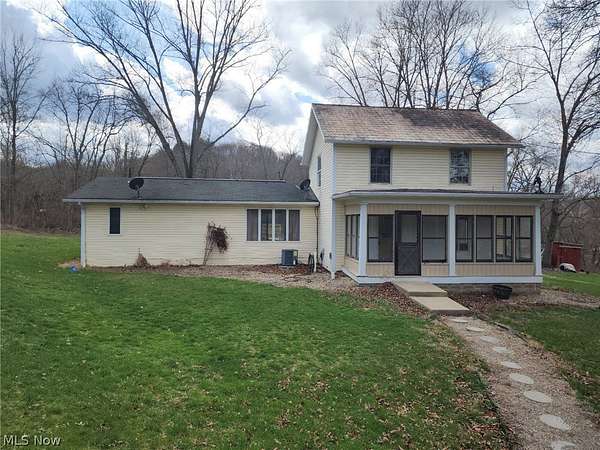 Est $1,569/moMove in ready-3 bedroom, 2 bath vinyl sided home on 6.6+/- acres. Spacious entry with hardwood floors. Oak kitchen includes appliances. Glass doors in the dining room lead to the patio. Pocket door to the main floor guest bath. Main floor master suite with private bath. 2 bedrooms and large storage area on the second floor. Full basement with laundry hook-ups and utility sink. Above ground pool installed in 2019 with new (2025) raised deck. 24 X 36 detached garage. 6.6+/- acres includes frontage on the Tuscarawas River. Located in Tusky Valley School District! Gas well is in the process of being plugged. Includes parcel #s 16-00706-000, 16-00703-000, 16-00697-000, 16-00696-000, 16-01709-000 & 16-00130-002.