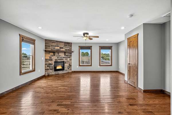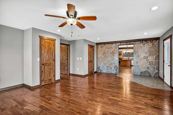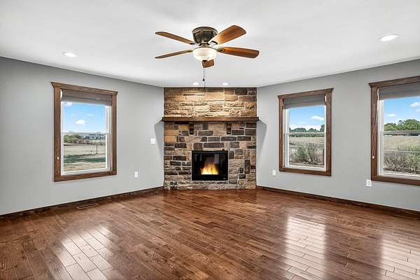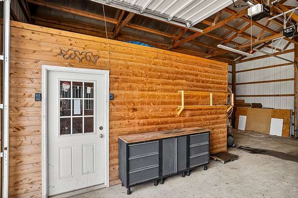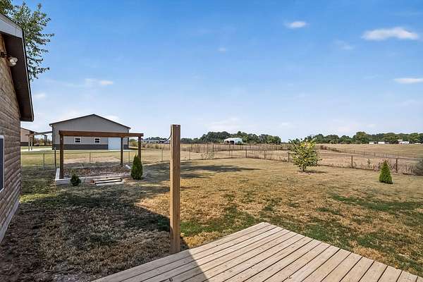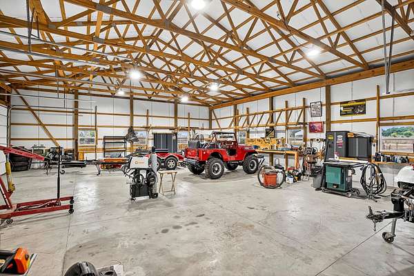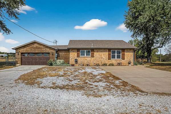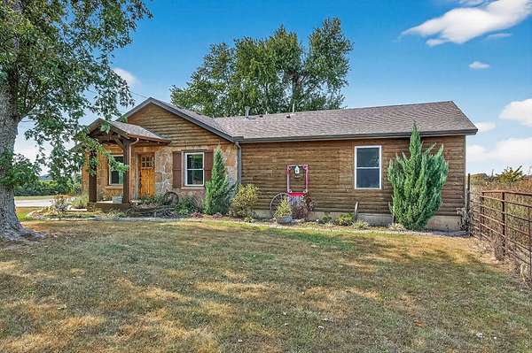 Conveniently located between South Springfield and Ozark, this charming 2-bedroom, 2-bath home sits on 5 acres and includes a 40x50 detached shop added in 2021 and a horse barn.As you arrive, you're greeted by a peaceful setting with manicured landscaping and the timeless charm of the rock-and-wood exterior. A cozy covered porch leads you inside, where hardwood floors set the tone in the first living area that opens into the kitchen. Here you'll find an abundance of custom wood cabinetry, granite countertops, updated stainless steel appliances, a center island, and a large pantry.From the kitchen tile floors and rustic wooden beams lead into the formal dining room. The open space provides a smooth transition into the spacious secondary living room, highlighted by a cozy stone fireplace. The primary suite offers a large walk-in closet, custom-tiled walk-in shower, and dual vanity. The second bath has been recently updated to complement the home's farmhouse style. The attached garage wraps up the space with a newly installed storm shelter that adds additional value to the home.Once outside the opportunities are endless. The 40x50 shop built in 2021, offers three front-facing bays, including one large enough for an RV or camper, plus an additional side-entry garage door for easy access. It's an ideal setup for car enthusiasts, travelers, or anyone in need of a workshop. The horse barn includes a large bay for trailers or equipment, horse stalls with mats and custom doors that offer direct access to the gated pasture.The property is fully fenced with durable pipe fencing, making it ready for livestock, a hobby farm, or homesteading dreams--all while being just minutes from town.