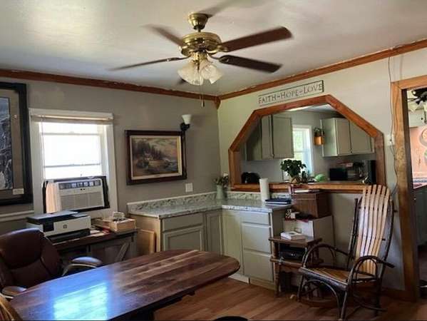 MOTIVATED SELLER! RARE FIND! Approximately 1/3 mile of river frontage! Income opportunities galore! Free natural gas! 55+/- acres on both sides of road. Could put tent camping on the river. Meat shop that you could operate or rent out - 12' * 12' walk-in cooler, meat saw, slicer, and meat grinder. Several trailer hookups. Hay meadow approximately 15 acres. Three creeks. Numerous fruit trees - apples, plums, cherry plums, apricots, grapes, pears, peaches, cherries. Numerous nut trees - black walnuts, hazelnuts, pecans, acorns, chestnuts. Barn, storage buildings, pond, chicken coop, bee hive. All kinds of animals - deer, turkey, rabbits, squirrels, raccoons, possums. Blackberries, blueberries. Sugar maple tree to make maple syrup. House is in middle of doing a remodel. Federal funding available for fencing - ask for details.