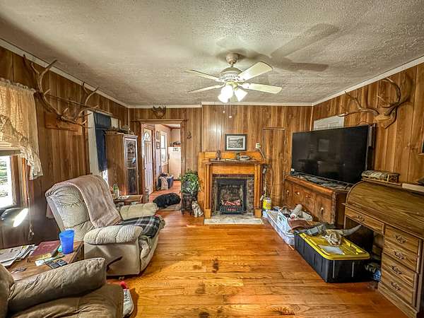 If you're looking off grid this, is it! Not total seclusion but far enough to enjoy the peace, quiet and wildlife! This home features 3 bedrooms, 1 bath! You will find yourself surrounded by 55 acres of great land some which backs up to the Cumberland River. This property has so much to offer including at least 15 acres of hayfields bailing near to 60 rolls. 25 acres of flat usable land. 3 spots you could use to add in mobile homes. 2 of which already have water, electric, gas and septic. The other already has a well. Also there is a barn, chicken coop, pond, 3 creeks and several trees of value. Those include apple, plum, cherry plums, apricots, pears, grapes, peaches, cherry, black walnut, pecans, hazel, acorn and chestnut. Also, you will find a meat shop already set up with what you need including a 12x12 cooler! There are several flats on this property you could use to build on. Last but not least FREE GAS with small royalties!!! If you're looking for your forever home where the wildlife roams this is it!