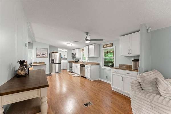 Lakefront Country Living on 8+ Acres! Discover your private retreat with this charming 3-bedroom, 2-bath mobile home set on over 8 beautiful acres of land. Perfectly suited for nature lovers, hobby farmers, or those seeking tranquility, this property offers a rare combination of space, functionality, and outdoor enjoyment. The home features a comfortable layout with a spacious living area, a well-appointed kitchen, and a split-bedroom design for added privacy. The master suite includes a private bath, while two additional bedrooms and a second full bath offer room for family or guests. Step outside and enjoy all this land has to offer! A private dock provides direct access to the water-ideal for fishing, kayaking, or relaxing by the shoreline. Several storage sheds are located throughout the property, offering ample space for tools, equipment, or outdoor gear. Whether you're looking for a weekend getaway or a full-time residence with room to roam, this property checks all the boxes. Don't miss the opportunity to own a slice of peaceful lake paradise!