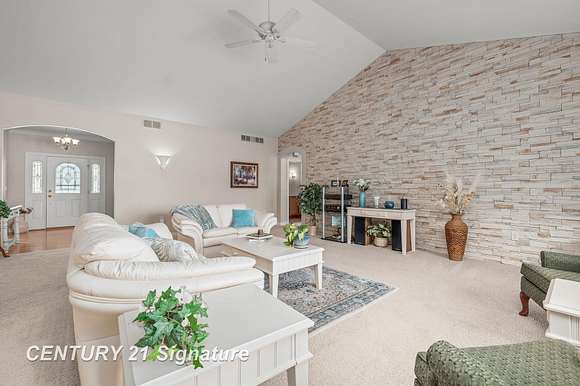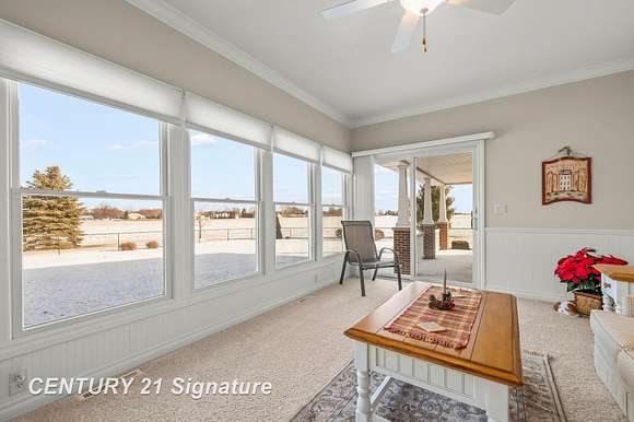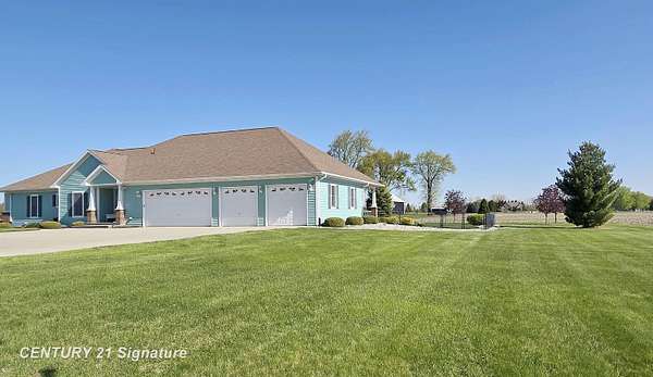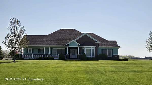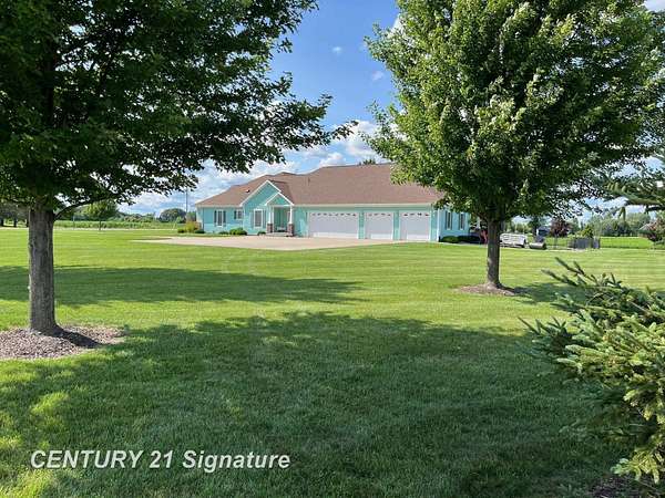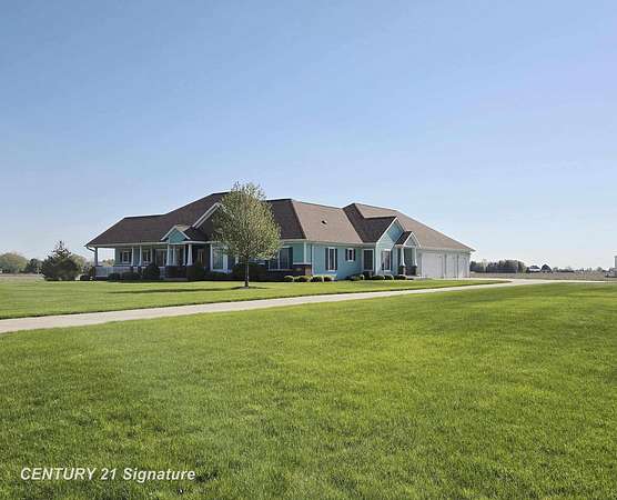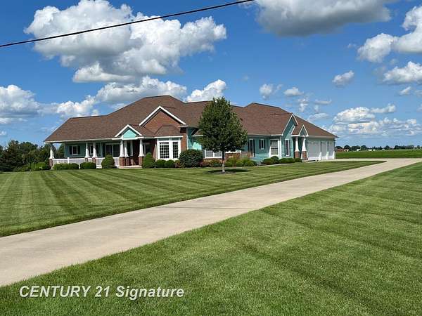 Welcome to this beautiful "One of a Kind" home! Built by Geiersbach Builders in 2005, the impeccably maintained home has more than 3,300 sq. ft. of living space on the main level, and over 3,300 sq. ft. on the lower level, 1,600 sq. ft. of which are finished. With a total of 5 bedrooms, 3 full baths and one half-bath, it features large living and dining rooms perfect for entertaining, a beautiful kitchen, first floor laundry, a home office, and a wonderful sunroom overlooking a fenced-in backyard. The large four-car garage offers plenty of room for your vehicles and toys, and an extensive driveway for additional parking. Sitting on 2.23 acres of land surrounded by mostly wide-open fields, the home's front porch is perfect for stunning sunset watching, and the covered concrete back porch, thoughtfully equipped with a 220-volt outlet for adding a hot tub or sauna if so desired, is ideal for watching sunrises. The south side entrance next to the garage also features a covered porch area with maintenance-free Trex decking. This home comes with a 14 month Home Warranty!!