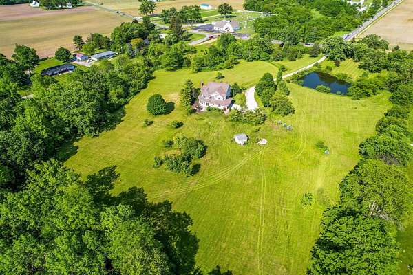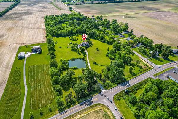 A Rare Gem in Plain City: Timeless Luxury on 13.87 acres. This is more than just a home-it's an exclusive lifestyle opportunity rarely available within the Jonathan Alder Local School District. Nestled on nearly 14 'dreamy' acres, this stunning French Country farmhouse, custom-built by Jerry Troyer, offers a perfect fusion of timeless elegance and modern sophistication. Sophisticated Living Spaces Meticulously maintained and thoughtfully updated, the residence invites elevated living at every turn. The heart of the home is a chef-inspired kitchen that flows effortlessly into the great room, anchored by a generous eating bar-perfect for hosting. The main level continues to impress with formal living and dining rooms accented by a charming bay window, an inviting family room with a decorative fireplace, and a private office wrapped in rich, floor-to-ceiling woodwork. The Ultimate Primary Retreat The second floor features five spacious bedrooms, highlighted by a spa-inspired primary suite. Indulge in the soaking tub, large low-threshold shower, and double vanities with a dedicated makeup area. This retreat includes a versatile flex room-ideal as a dressing room, private lounge, or a custom 'dream shoe closet.' Two additional bedrooms feature private en-suites, while the remaining two share a stylish Jack-and-Jill bathroom. Endless Potential & Outdoor Bliss Discover a hidden gem on the partially finished third level-a perfect space for a fitness studio or recreation room (not included in total square footage). Outside, the property transforms into a private sanctuary. Relax on professionally landscaped patios, fish in your private pond, and take in panoramic views that truly must be seen to be believed. This is a rare opportunity to own a legacy property that delivers on luxury, lifestyle, and location in one of Central Ohio's most sought-after communities.