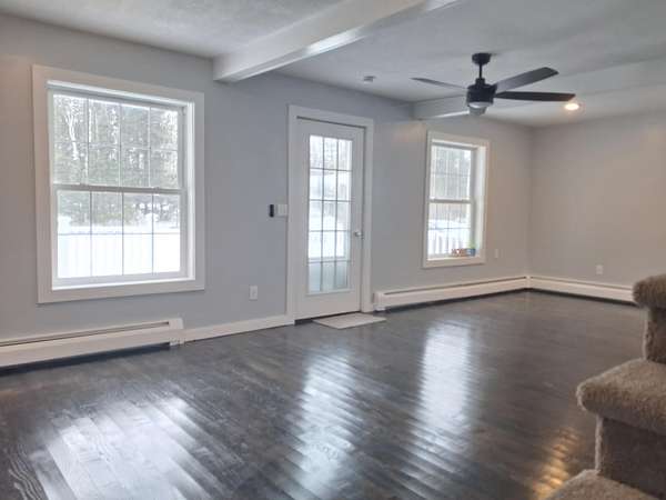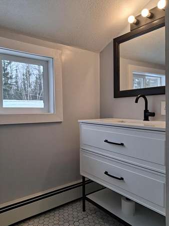 Welcome to this thoughtfully updated frame home set on 1.5 acres with a peaceful wooded backdrop, offering comfort and lasting value. The property features a well-maintained lawn ideal for outdoor enjoyment, along with a cozy fire pit perfect for relaxing evenings. Inside the home you will find new hardwood flooring and carpet, along with new cabinets, vanities, light fixtures, sinks, and faucets, creating a fresh, modern feel throughout. The updated kitchen is completed with new appliances and stylish finishes, making it ideal for both everyday living and entertaining. Major improvements include structural updates, updated electrical, a new combi unit providing peace of mind and efficient comfort. The layout offers 3 bedrooms and 2 bathrooms, well-suited for a variety of lifestyles. Additional highlights include a fully updated 2-car garage, a reinforced driveway for added durability, and an updated front deck. Thoughtfully improved inside and out, this move-in-ready home blends modern updates with spacious outdoor livingtruly a wonderful place to call home.