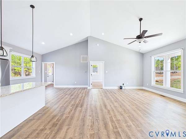 Welcome to this beautiful 4-bedroom, 2-bath Craftsman-style home built by River Rock Homes, featuring the popular Slate River model. Designed with comfort and style in mind, this home offers an open floor plan with cathedral ceilings that create a bright, spacious feel throughout the main living area. The kitchen is the heart of the home, showcasing granite countertops throughout, a large center island, Merillat cabinetry, and a functional layout that is perfect for everyday living or entertaining. Durable LVP flooring flows through the main living spaces, combining style with easy maintenance. Step outside to enjoy the inviting front porch, the perfect place to watch the sunrise and enjoy your morning coffee while taking in the peaceful surroundings. Situated on 1.5 acres, the property is fenced on three sides and offers plenty of room for gardening, outdoor activities, or simply enjoying nature. Located just 10 minutes from Farmville, this home provides the ideal balance of convenience and quiet country living. The setting is peaceful, with abundant local wildlife and plenty of space to relax and unwind. If you're looking for a newer Craftsman-style home with modern finishes, room to grow, and a tranquil setting close to town, this property is a must-see.