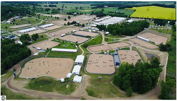One of the last remaining vacant parcels in Northern Michigan's premier gated equestrian community. This private 6.03-acre lot is ideally located at the rear of the development with direct bridle path access to the showgrounds. Since August 2024, over $250,000 in improvements have been completed, including grading, a tent pad, electric, well, and paddocks--making it ready for your use during the 2026 circuit while you finalize your barn plans. A site plan is already in place to streamline the design process, with a full list of improvements available in the attached documents. Grand Prix Village North was designed by equestrians for equestrians, featuring luxury barns, secure gated entry, paved roads, and a private trail network. Offering both privacy and convenience, this parcel represents a rare opportunity to create your ideal equestrian estate adjacent to Flintfields Horse Park, home of Traverse City Horse Shows.