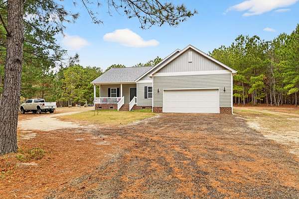 Built in 2021, this beautiful 3-bedroom, 2-bath country home sits on 11 acres in a peaceful rural setting with no neighbors in sight. Offering privacy and room to breathe, the property provides endless possibilities; with ample space for a garden, hunting, livestock, and chickens, along with a potential site for a future pond. Inside, the home features a desirable split floor plan and a versatile room that works perfectly as a home office or formal dining room, along with select handicap-accessible features for added comfort and convenience. Surrounded by nature yet only minutes from Lake Marion and a public boat ramp, this property combines quiet country living with easy access to outdoor recreation.