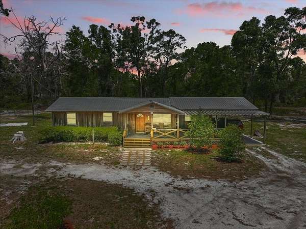 ***BRAND NEW CENTRAL A/C UNIT & WHIRLPOOL REFRIGERATOR INSTALLED. Welcome home to country living without compromise! This inviting 3 bed, 2 bath residence rests on 5.02 acres along a paved road in Old Town, FL--well outside the flood zone. Featuring an open floor plan with stylish vinyl plank flooring throughout, this home offers modern comfort with a stainless-steel appliance package and a beautifully tiled shower in the guest bathroom. A spacious utility room provides ample storage space, while the inviting front porch and attached 1-car carport offer the perfect spot to relax and enjoy the peaceful surroundings. The property is fully fenced and gated for privacy, and includes a 40x40 pole barn--ideal for equipment or hobbies. With two 2" wells and one 4" well, water access is abundant. Don't miss the opportunity to enjoy country living with modern amenities!