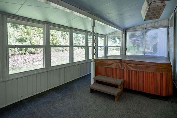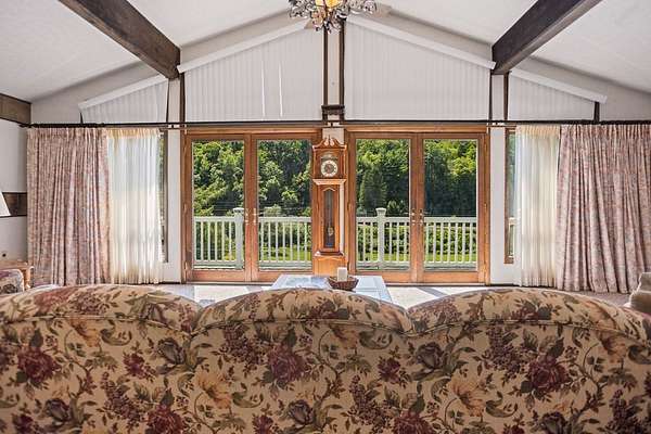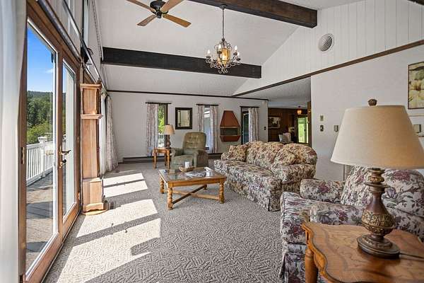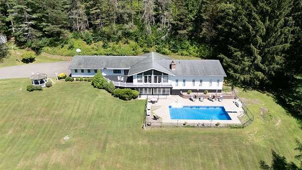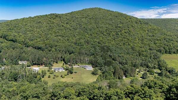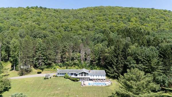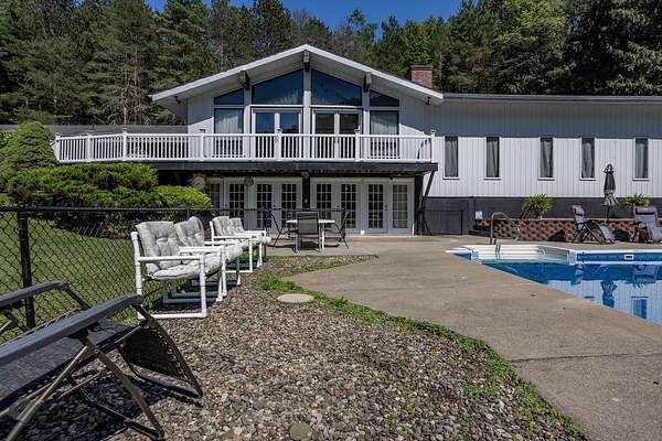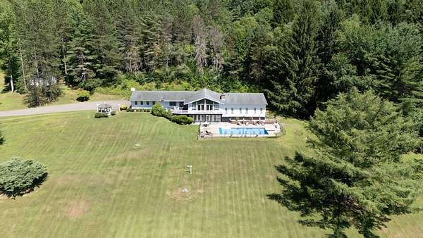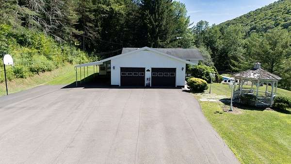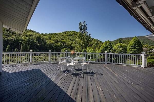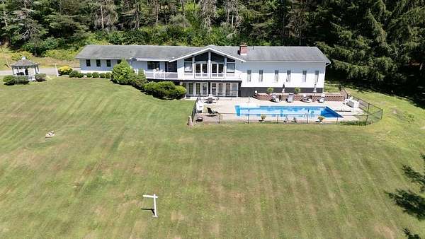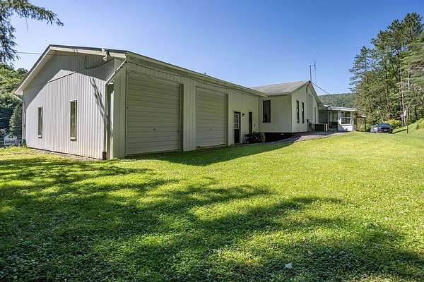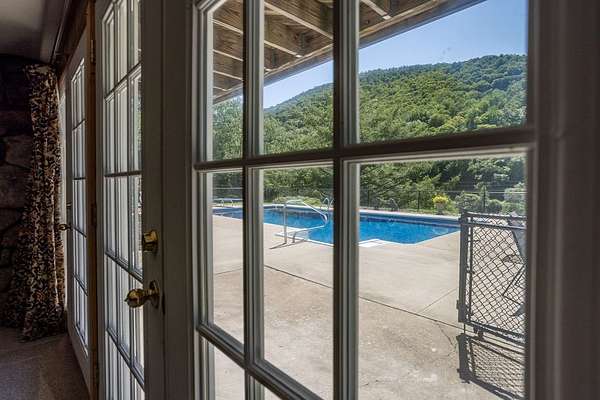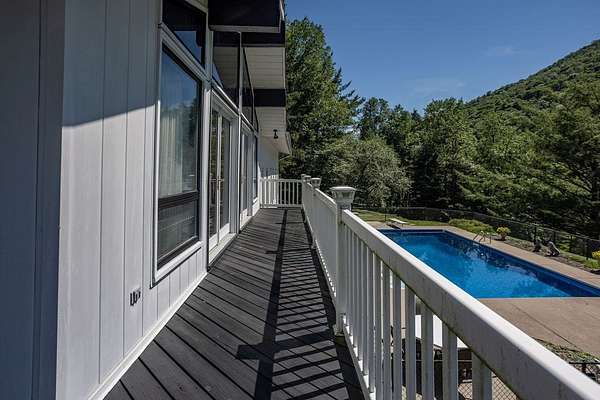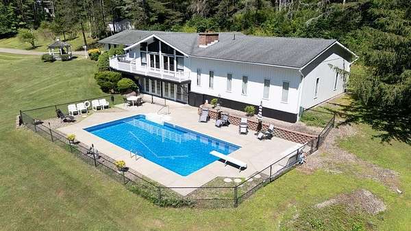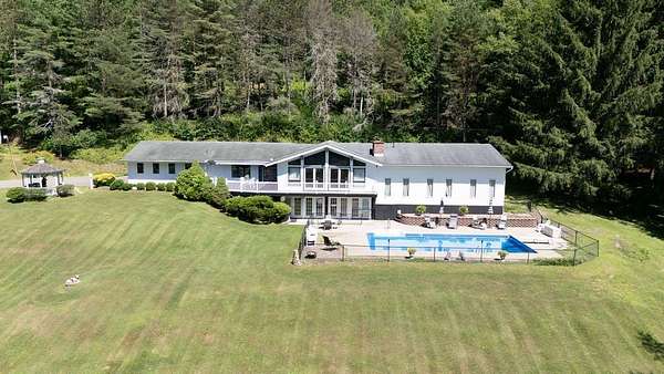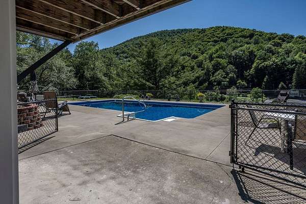 This private 47 acre retreat offers a perfect blend of serenity and functionality. Highlighting mountain views, abundant wildlife, and a peaceful creek, the estate is ideal as a primary residence, vacation getaway, or income property. The main level features an open-concept kitchen with a central island, a bright living area with French doors opening to an upper deck, two bedrooms, a full bathroom with a SafeStep walk-in tub and dual vanities, and a half bath. The finished walk-out basement includes a large recreation area with a pool table and bar, French doors to the pool area for easy entertaining, two additional rooms suitable as offices or storage, two 1/4 bathrooms (one off the office area that just needs to be hooked up). The 1,296 sq ft garage has a finished office or potential for two extra bedrooms. Established trails throughout the land are perfect for hiking, riding, and hunting. This house comes with a Home Warranty!