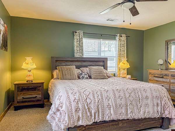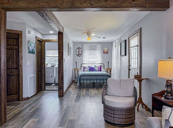 Recently remodeled 3BR/2BA home on 17 acres m/l with a park-like setting. Spacious layout with walk-in closets and large family room that could serve as a 4th bedroom, office, or bonus space. Kitchen and living areas offer comfortable flow for everyday living. Exterior features include a large deck with hot tub, fenced garden area, and chicken coop—ideal for hobby farm or homestead use. Property offers abundant wildlife and excellent hunting opportunities. Conveniently located near the Buffalo National River, Crooked Creek, White River, and Bull Shoals Lake, providing easy access to fishing, floating, and outdoor recreation. Property has a level site with its own city water, electric & fiber for potential RV sties or cabins for additional income.