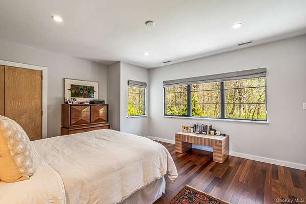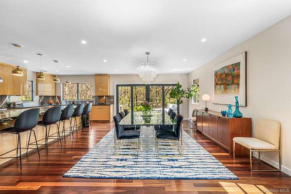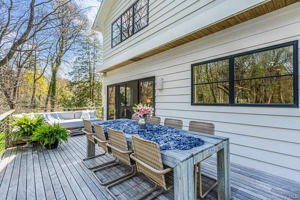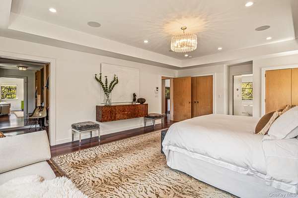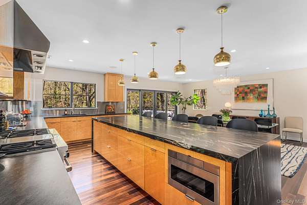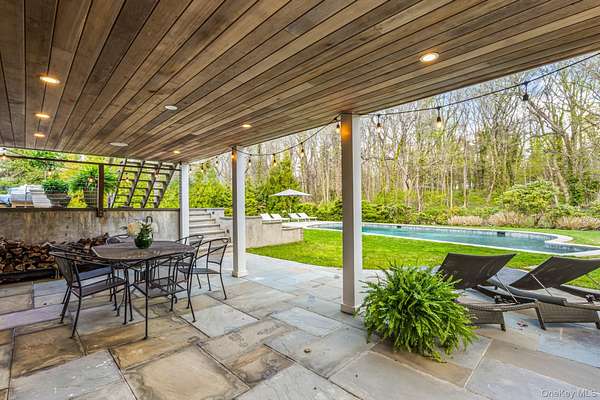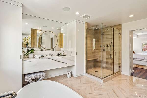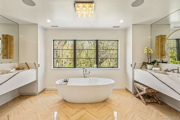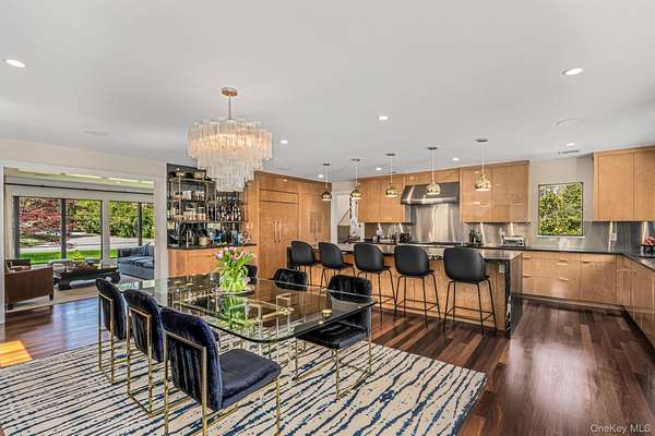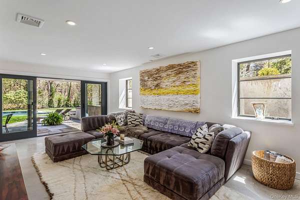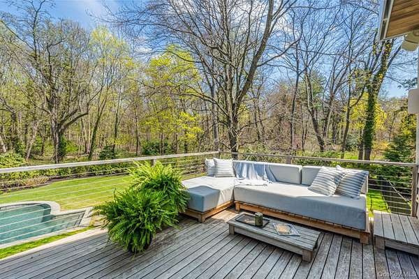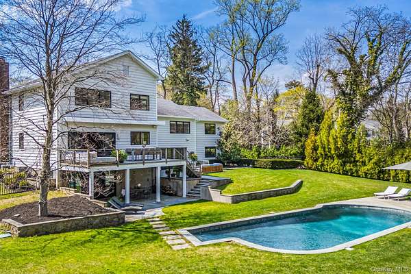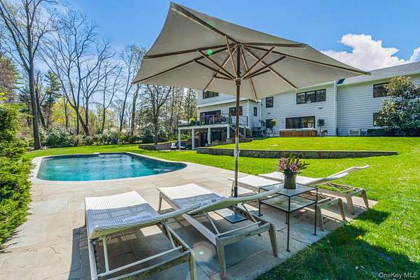 Situated in the prestigious Village of Plandome, NY, this stunning post-modern masterpiece is a true designer showcase that redefines luxury living. Set on just shy of two acres, this property offers unparalleled space and privacy seamlessly blending elegance with tranquility. Boasting 6 bedrooms and 5.5 baths, this home has been meticulously reimagined, expanded and updated with top tier finishes, and stunning design elements that are nothing short of breathtaking. Step into the heart of the home-a chef's dream kitchen that exemplifies both form and function. Featuring bird's eye maple lacquered cabinetry, a striking 12 foot leathered waterfall marble island, two Miele dishwashers, a Sub-Zero refrigerator, and a Wolf burner range with griddle, it's a space that's as beautiful as practical. Every corner of this home has been curated with thoughtful upgrades, including a multitude of windows that bathe the space in natural light, a whole-house water filtration system, built-in speakers, teak hardwood flooring, and radiant heating. The tranquil primary suite is a true spa-like escape, featuring a spacious walk-in closet and a beautifully reimagined primary bath. Enjoy the luxury of separate marble vanities adorned with exquisite vintage lighting, while large windows flood the space with warm, natural light, creating an inviting and serene atmosphere. Cozy up by one of the home's wood or gas fireplaces, and enjoy the convenience of a custom mudroom, separate laundry room, and with three zones of heating and cooling, this home ensures year-round comfort. Outside, the property transforms into a private oasis with a heated saltwater pool, expansive deck and separate bluestone patios creating the perfect setting for entertaining or relaxing in style. The lush, professionally designed landscaping across the sprawling 1.92 acre property is complemented by a brand-new generator, offering peace of mind in every season.
