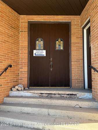N State Street to E 3rd. Parking behind church entered from No State or N Maple