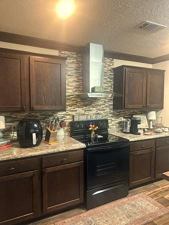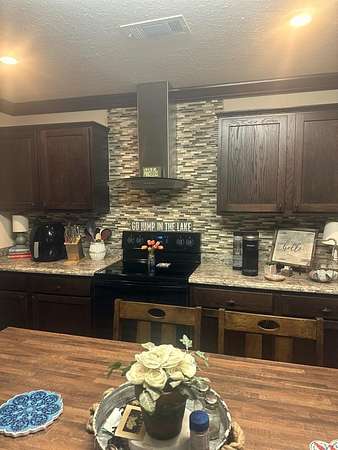 Looking for your vacation home at Ky. Lake?? Look no further! This 3 bedroom, 2 bath is move in ready and is nicely furnished. The living room is spacious and features some built in shelving, the kitchen has ample cabinets, that are complemented by an attractive backsplash and a work island/breakfast bar completes the look. There is a formal dining room that could also be used as an office or den. Large primary bedroom and bathroom with a walk-in closet. Just bring your clothes and your fridge contents and you are set! Situated on 1.5 acres you have plenty of room to build a detached building and there is a power pole and water on an adjacent lot for another home to be put on. There is 300 feet of road frontage on Hackberry and on Allen Drive as well.