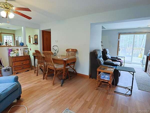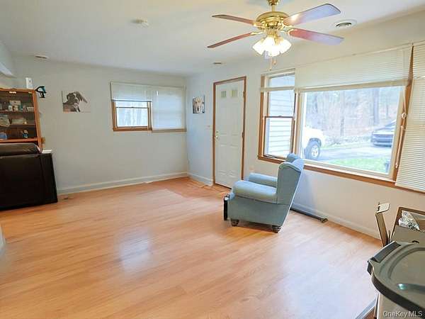 Nestled on 1.9 acres framed by timeless stone walls and mature trees, this isn't just a home-it's a hideaway. Quiet, private, and filled with natural light, this 3-bedroom, 2-bath retreat is the kind of place you discover and never want to leave. From the moment you walk in, the oversized windows steal the show-flooding the space with light and letting the outside in. The first floor features easy-living with laminate floors throughout, a generous kitchen ready for everything from Sunday pancakes to last-minute takeout, and a cozy bedroom that keeps things flexible. Laundry is conveniently on the main level-no hauling baskets up and down stairs. Out back, a wide deck stretches into the peaceful yard, perfect for grilling, unwinding, or watching the stars put on a show. Upstairs, the primary suite is seriously oversized-your own personal retreat with a private bath and plenty of room to spread out. A third bedroom, tucked upstairs, adds even more possibilities: guest space, office, art studio-you name it. Mechanically, the home checks all the boxes: the roof is just about two years old with 50-year shingles, the heating and central air systems are under 10 years old, and there's a whole-house generator for year-round peace of mind. And the location? Just 20 minutes to Route 17 and I-84 in Port Jervis-right near the New Jersey and Pennsylvania borders, the Delaware River, and local shopping. Whether you're commuting, adventuring, or running errands, you're right where you need to be. If you've been searching for that rare mix of character, space, and serenity-this is it. The kind of place where you exhale the second you pull into the driveway.