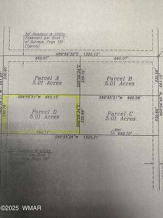Est $397/mo5 plus acres appx 20 minutes from Show Low, with a shared well and power to the lot line. No HOA. If your looking to build with improvements already on the property, this is the lot! Recently surveyed. Parcel has a proposal to be recorded as 107-48-070D.See survey in photos.