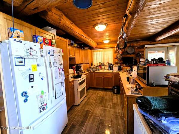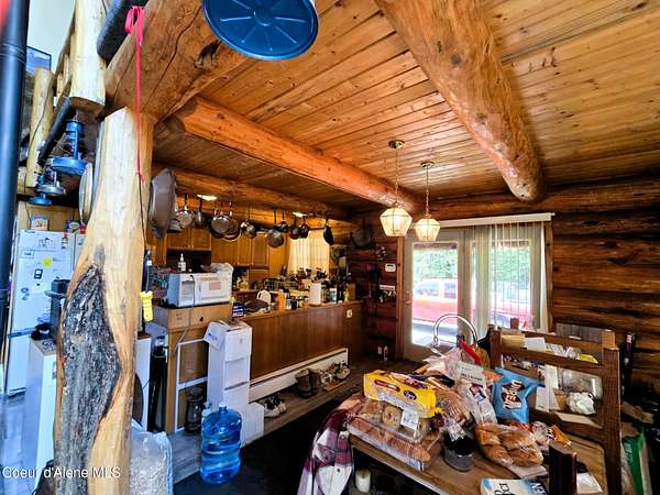 Tucked back in the cedars just off county maintained Freeman Creek rd sits this well built log home on almost 6 acres! A recreational paradise surrounds you with Dworshack Reservoir just 4 miles away and only 25 minutes to the Clearwater River. The Great Room has an open concept kitchen with a breathtaking cathedral ceiling and floor to ceiling views. Interior includes main floor utilities, dining area, tiled bath, cozy pellet stove. Exterior includes a 4 bay shop, multiple storage buildings, a playhouse that could be converted to guest quarters and a large diesel generator professionally hard wired into the home. Lots of mature trees and an open meadow. Wildlife galore. Home got a brand new roof in 2024. Interior needs some upgrading but the bones of this home are solid.
