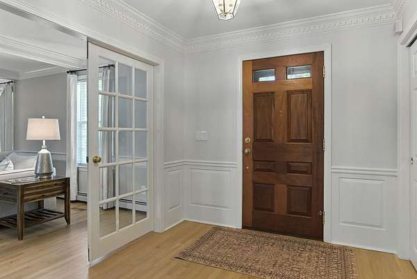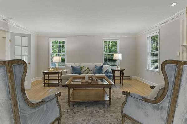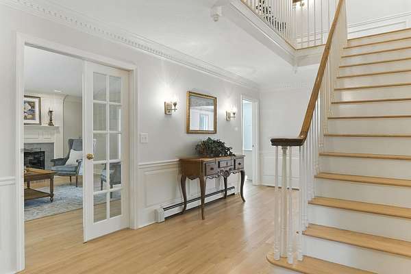 Presidential in Presence, and Truly a Place to Call HOME. Arrive via an alluring private tree-lined avenue that sets the tone for this stately and timeless Colonial, crafted with exceptional quality and craftsmanship by respected builder Jeff Hudson. This residence is a true masterpiece - move-in ready and designed for both traditional and multi-generational living. Inside, you'll discover an elegant blend of classic design and modern updates. Beautiful natural hardwood floors flow throughout, complemented by a chef-worthy (or even chef-defiant) kitchen, featuring a LaCanche dual-fuel (electric/propane) range and professional-grade exhaust hood. The kitchen opens to a coffered-ceiling family room, perfect for gathering around a wood fire. Host unforgettable dinners in the expansive, formal dining room, and enjoy conversation in the sophisticated living room, complete with space for your grand piano. A sun-drenched sunroom off the kitchen offers seamless access to the serene backyard (IDEAL for a POOL) plus the detached garage. Best of all - Your property abuts the peaceful Joppa Conservation Land for added privacy and natural beauty. Upstairs, the giant primary suite includes a private sitting room and private bathroom. Three additional bedrooms, multiple bathrooms, and a 3rd floor private guest suite provide comfort and flexibility for any lifestyle. The walkout lower level is ideal for a media room, home office, or gym. VISit Today!