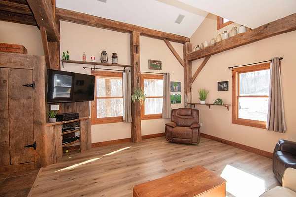 One-of-a-Kind Post & Beam Barn Home on 11 Acres with 100-Mile VT Mountain Views in Picturesque Washington County 68 Red Gate Ln., Shushan, NY. Take in the incredible mountain views as you approach this unique post and beam home built 19 years ago entirely from the materials taken from an 1850s barn in Hebron, NY. Inside, you'll find exposed hand-hewn beams and repurposed barn boards creating soaring, light-filled spaces that take full advantage of the views. A builder's home, you'll find it's been crafted of fine materials with energy-conscious choices and maintained with tremendous pride of ownership. Enjoy total privacy, unmatched views, wildlife, access nearby to the Battenkill and life in Washington County, popular for its thriving agricultural community. Location: The home offers an absolute respite from the world on its 11-acre site and road with just three homes making it feel as though you're on 100 acres. Despite the feeling of solitude, the wifi and cell signal are strong for work-from-home opportunities. This home sits in the Village of Shushan, Town of Jackson, in beautiful Washington County known for its idyllic country setting, prolific farms, antique shops, covered bridges, and the peaceful privacy it offers residents. The Battenkill River is widely recognized for its natural beauty and is enjoyed by many including trout fisherman, canoeists, and for tubing. Dorset VT is less than 25 minutes away, 35 minutes to Manchester, VT & 45 minutes to Saratoga Springs, NY. Schedule your private showing of this exceptional home today.