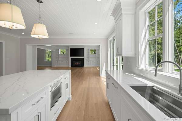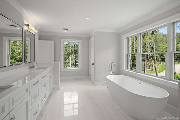 Welcome Home! Set in the heart of prime Cold Spring Harbor, this brand-new, custom residence offers 6,500 sq. ft. of modern luxury on 2 beautifully landscaped acres. Exceptionally designed with today's lifestyle in mind, the home features 6 bedrooms, 6.5 baths, and stunning architectural details throughout. The primary suite is a true retreat with dual walk-in closets and a spa-inspired bath complete with radiant heated marble floors, soaking tub, and custom shower. The chef's kitchen stands out with Thermador stainless steel appliances, a quartz center island, and a butler's pantry with wine cooler. The open floor plan flows seamlessly into the great room -perfect for both everyday living and entertaining. The wide-plank white oak floors run throughout the home elevating each space and bringing together the sophisticated details of this home. A first-floor bedroom with full bath and direct access to the yard adds additional flexibility. The expansive finished lower is designed for recreation and wellness with space for a home theater, gym and entertaining. Smart home wiring, a whole-house generator, and 3-car garage with EV charger hookup add to all the modern conveniences this home has to offer. Outdoors, the property is enhanced with bluestone walkways, Belgium block curbing, in-ground sprinklers, and lush landscaping. Just minutes from Huntington Village, Cold Spring Harbor shops and dining, the train, and top-rated schools, this home delivers both luxury and lifestyle in one of Long Island's most coveted communities. Cold Spring Harbor School District #2. Eagle Dock Beach and Mooring (dues).