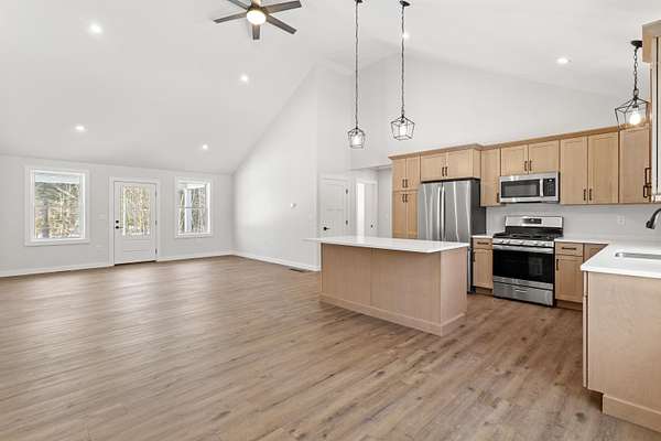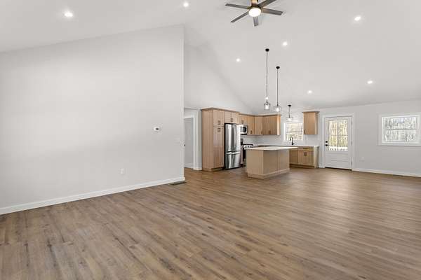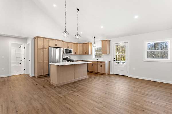 Est $3,884/moSet back from the road on over 2 private acres, this new construction home offers a perfect blend of style, space, and privacy. The stunning, brand-new kitchen features a gas range, modern finishes, and an open layout ideal for everyday living and entertaining. Cathedral ceilings create a bright, airy feel throughout the main living space, while the two-car garage adds convenience and storage. A full basement designed to be finished offers excellent potential for additional living space. Outside, enjoy summer evenings on the beautiful front porch, surrounded by peaceful natural scenery. A rare opportunity to own a thoughtfully built home. Showings start at the open house Saturday 11-1 January 31st and Sunday 11-1 February 1st.