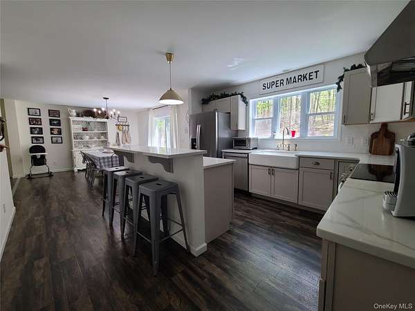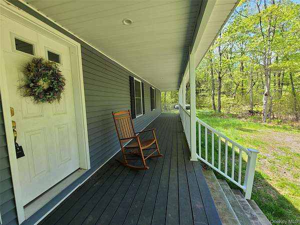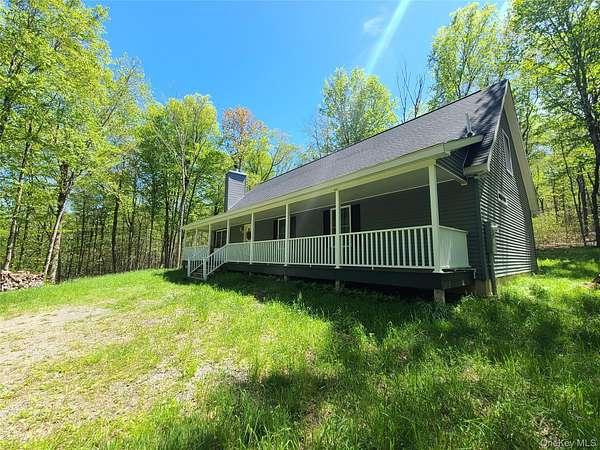 Privately tucked away on 57 wooded acres on top of a mountain in Livingston Manor, this home is a real treat. Tastefully finished interior offers 3 bedrooms, 2 full baths, and a very comfortable layout. Entry foyer opens to living room with stone fireplace which joins a formal dining room with sliders to deck. Kitchen exudes a sleek farmhouse style with SS appliances and Quartz counters and a family friendly island. Bathrooms are on trend with beautiful neutral porcelain tile. Gorgeous luxury vinyl plank flooring throughout the home is easy to maintain and very durable. Full second floor is ready to finish and plumbed for 2 more baths and is a perfect flex-space suitable for guest quarters, studio, theater, or play. The property is peaceful and wooded with mature trees, trails and abundant wildlife. The Livingston Manor area is the go-to place for great restaurants, breweries, shops and world class fly-fishing. Bethel Woods, Casino and Waterpark are within a 30 minute drive. With everything brand new in 2019 this is an easy choice for the picky buyer who wants privacy and a beautiful new home.