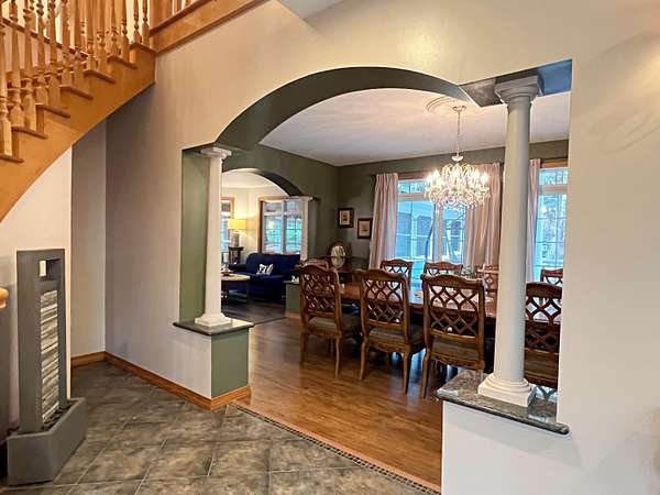 Impressive Turn-Key, Mostly Furnished Ski-in/Ski-out Private Escape for an attractive price per sq ft of roughly $100 this 4-6 Bedroom Home w/ 4 Full Baths & 2 ½ baths sits on over 9 acres and close to town amenities, trail systems including ATV/Snowmobile, biking, hiking, & snowshoeing. Situated in highly desired residential area w/ ski-in/ski-out trail access to Lonesome Pine. The house also has everything to keep you entertained including a home theater w/ 3D, 4K Dolby 7.24 Surround Sound, 4 Season Relaxation Room features an 8-person hot tub, 4-person infrared sauna, and JennAir warming oven, spacious game room w/ billiards, darts, foosball, & air hockey. If you're going to live in Northern Maine this attached heated 3-Car garage is key. With 3 points of direct access to living space including home gym above the garage, main living space off kitchen and 3rd into a bonus room in the basement formerly used as the perfect spot to take off and put away all of the ski and snowboarding gear it makes for prime rental income property or the large shared family home! Spacious kitchen with custom oak cabinets, walk-in pantry, granite counters, a breakfast nook with propane stove to warm up by after day on the slopes, leading to the formal dining room w/ double sliders making it convenient access to the private back deck. A Sun-lit 1st floor office with built in cabinets 2 half baths, and a double sided propane fireplace between the living and dining area complete the main floor. The captivating Grand Staircase leads to the 2nd floor Master-En-Suite w/ jetted tub, tiled walk-in shower, walk-in closets, a nursery/reading nook or office area w/ access to the 2024 Balcony, a 2nd En-Suite w/ full bathroom, a spacious laundry room centrally located, and 2 more spacious bedrooms. On the third floor is an additional bedroom or craft room that also offer attic access. The house has multiple heating options and is well insulated w/triple-glazed windows! Must see!