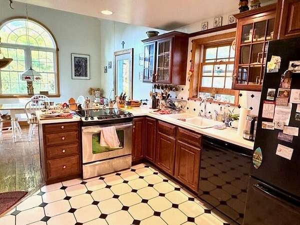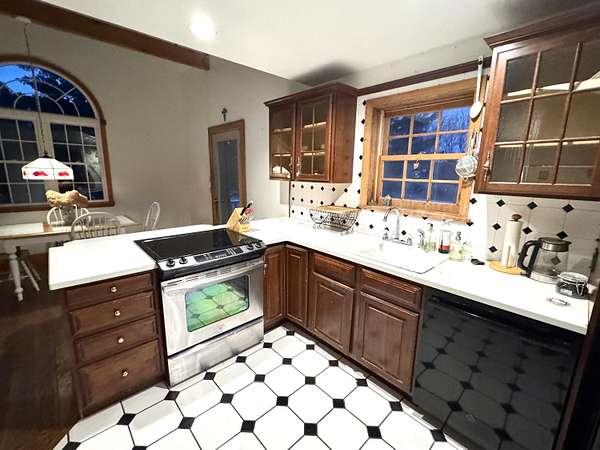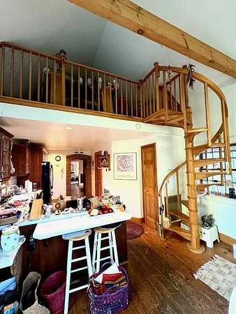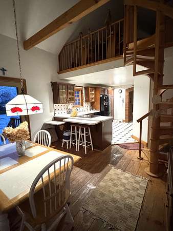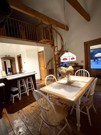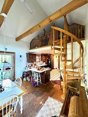 - Beamed Ceilings, Bookcases, Eat-In Kitchen, High Ceilings