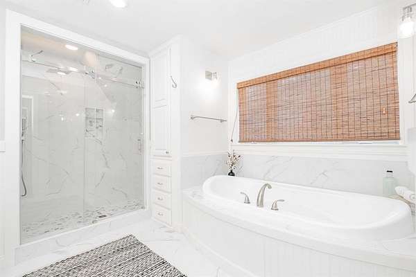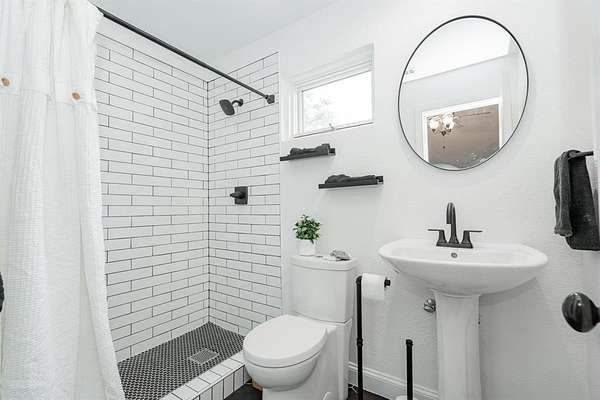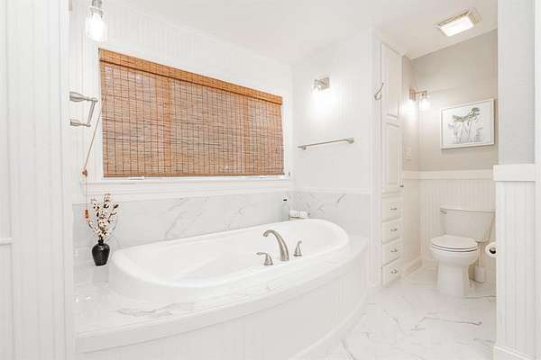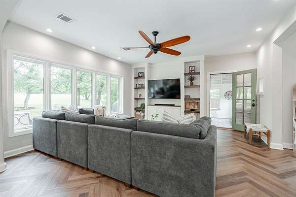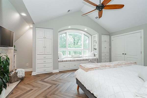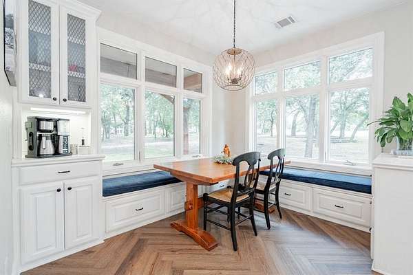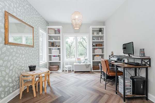 This home checks all the boxes, plenty of room, private baths for everyone, lots of privacy and the natural lighting is amazing. Nestled among mature trees and set back from the street, it offers privacy and peace. Two acres of tranquility help melt away the stress of everyday life. The amazing kitchen is filled with natural light and boasts expansive windows. Starting your day at the breakfast nook sets the perfect tone for what lies ahead. The home flows seamlessly into a spacious living room, and on to the dining room and the additional playroom or office with its own split system for comfort. Luxury vinyl flooring runs throughout the home, complemented by numerous updates. Picture yourself enjoying dinner in the dining room with views of the backyard and the wildlife it attracts. The downstairs bedroom can be used as an office or library. Upstairs, the primary bedroom and updated bathroom offer a luxurious retreat. Two additional upstairs bedrooms each feature their own updated bathrooms and built ins.