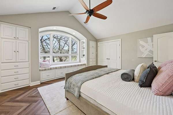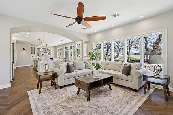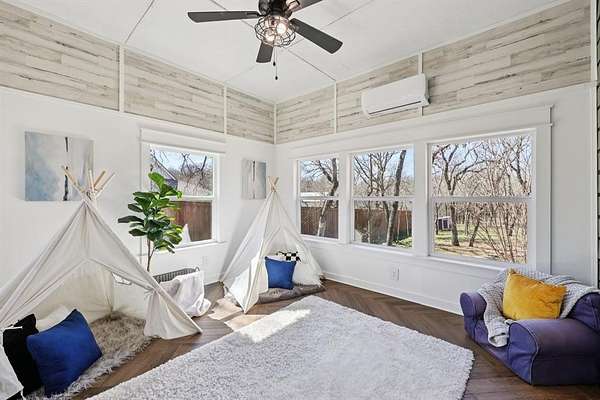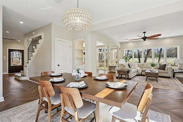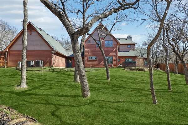 Introducing a Chalet-style Rustic Craftsman retreat, thoughtfully renovated with elevated, designer-selected interiors, set on a private and expansive 2-acre estate in Oak Point, Denton, Texas. This 4-bedroom, 4-bath residence spanning 3,436 square feet showcases exceptional craftsmanship, blending timeless architectural character with extensive modern improvements. Positioned well back from the street, the property offers rare privacy, open space, and a true estate-like setting. Inside, the home has been extensively improved to enhance both beauty and functionality. The kitchen and main living areas were fully reimagined to create a seamless open-concept layout filled with natural light. Luxury vinyl plank flooring in a sophisticated herringbone style extends throughout the home, while the staircase has been completely refinished with updated balusters, handrails, and posts, highlighting the home's quality craftsmanship. Each of the four bedrooms features its own private en suite bathroom, including a fully renovated primary bath designed as a spa-like retreat. Additional bathroom renovations include updated countertops, sinks, fixtures, toilets, fresh paint, and the addition of a full bath on the main level, providing both comfort and convenience. Versatile bonus spaces add to the home's appeal, including an enclosed sunroom converted into a functional year-round living area and a dedicated media room with a cinematic entertainment feel. Large windows throughout the home frame peaceful views of the surrounding acreage while enhancing the bright, open interior. The 2-acre lot provides exceptional privacy, generous space between neighbors, and flexibility for outdoor living or livestock. Located within close proximity to Lake Lewisville and featuring access to a community boat ramp, as well as parks, playgrounds, and trails, the home offers an ideal balance of recreation and tranquility. Buyer and buyers broker to verify all information.
