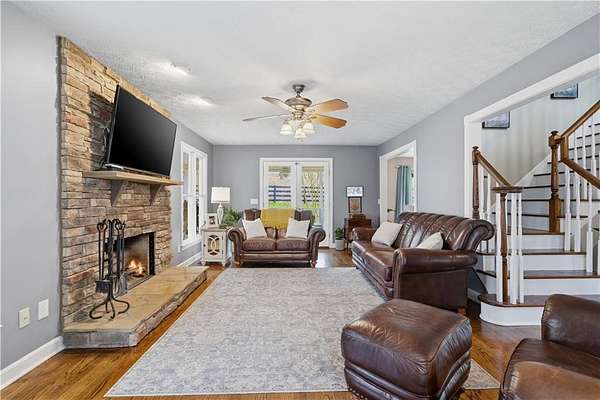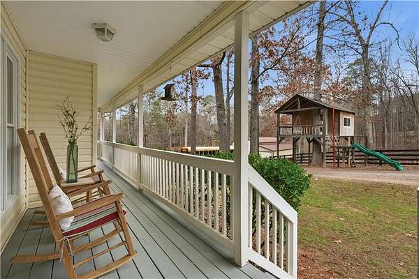 Escape to the serene rolling hills of Rydal with this exceptional four-bedroom, two-and-a-half-bathroom residence situated on five expansive acres. This property offers a rare combination of privacy and functionality, perfect for those who appreciate open spaces and a connection to the outdoors. The exterior presents a classic aesthetic with a mix of natural stone and durable siding, complemented by a wide, inviting wrap-around front porch. This expansive porch serves as an ideal spot to enjoy the summer breeze or watch the sunrise over the North Georgia landscape. As you approach the home, the long driveway and established landscaping create a sense of arrival that is both peaceful and impressive. Upon entering, the main floor reveals a thoughtful layout designed for both daily living and hosting guests. The heart of the home is the spacious family room, anchored by a floor-to-ceiling stone fireplace that adds significant texture and warmth to the living space. This central feature is not only a visual focal point but also sets the tone for the residence's rustic yet refined character. Rich hardwood flooring flows seamlessly throughout the main level, leading into a dedicated dining area that provides a sophisticated setting for evening meals and holiday gatherings. Large windows throughout the main floor allow for an abundance of natural light, bridging the gap between the comfortable interior and the lush exterior surroundings. The kitchen is a standout feature, equipped with warm wood cabinetry, polished granite countertops, and a central island with a gas cooktop and breakfast bar seating. This workspace is designed for efficiency and social interaction, allowing the host to remain part of the conversation while preparing meals. Stainless steel appliances, including a built-in wall oven and microwave, ensure the space is as practical as it is attractive. Adjacent to the kitchen, a bright breakfast nook offers peaceful views of the wooded backyard and provides direct access to the outdoor living spaces. For added convenience, a well-organized laundry room and powder room are positioned just off the main living areas. The upper level houses the private quarters, featuring a primary suite that serves as a quiet retreat. The primary bathroom has been meticulously updated to include a modern freestanding soaking tub, a seamless glass-enclosed shower with custom tile work, and elegant vanity finishes. This space is designed to provide a serene atmosphere for relaxation at the end of a long day. Three additional guest bedrooms are located on this floor, each offering ample closet space and easy access to a second full bathroom. The fourth bedroom is particularly spacious, making it a versatile option for a home office, media room, or creative hobby space, depending on your needs. The outdoor living areas are a standout feature of this property. A large rear deck extends from the back of the house, overlooking the fenced-in lawn and the dense treeline beyond. This space is perfect for summer gatherings, providing plenty of room for outdoor seating and dining. The five-acre lot provides a significant buffer from neighbors, ensuring a high degree of privacy. The property also includes a functional shed for storage and a fenced area suitable for animals or expansive gardening projects. Modern comforts are integrated throughout the home, including a whole-house fan to maintain consistent airflow and cooling during the warmer months and a private propane system. Located in the peaceful Rydal community while remaining accessible to the shopping and dining amenities of Cartersville, this home offers the best of North Georgia living. Contact us today to schedule a private tour of this impressive estate.